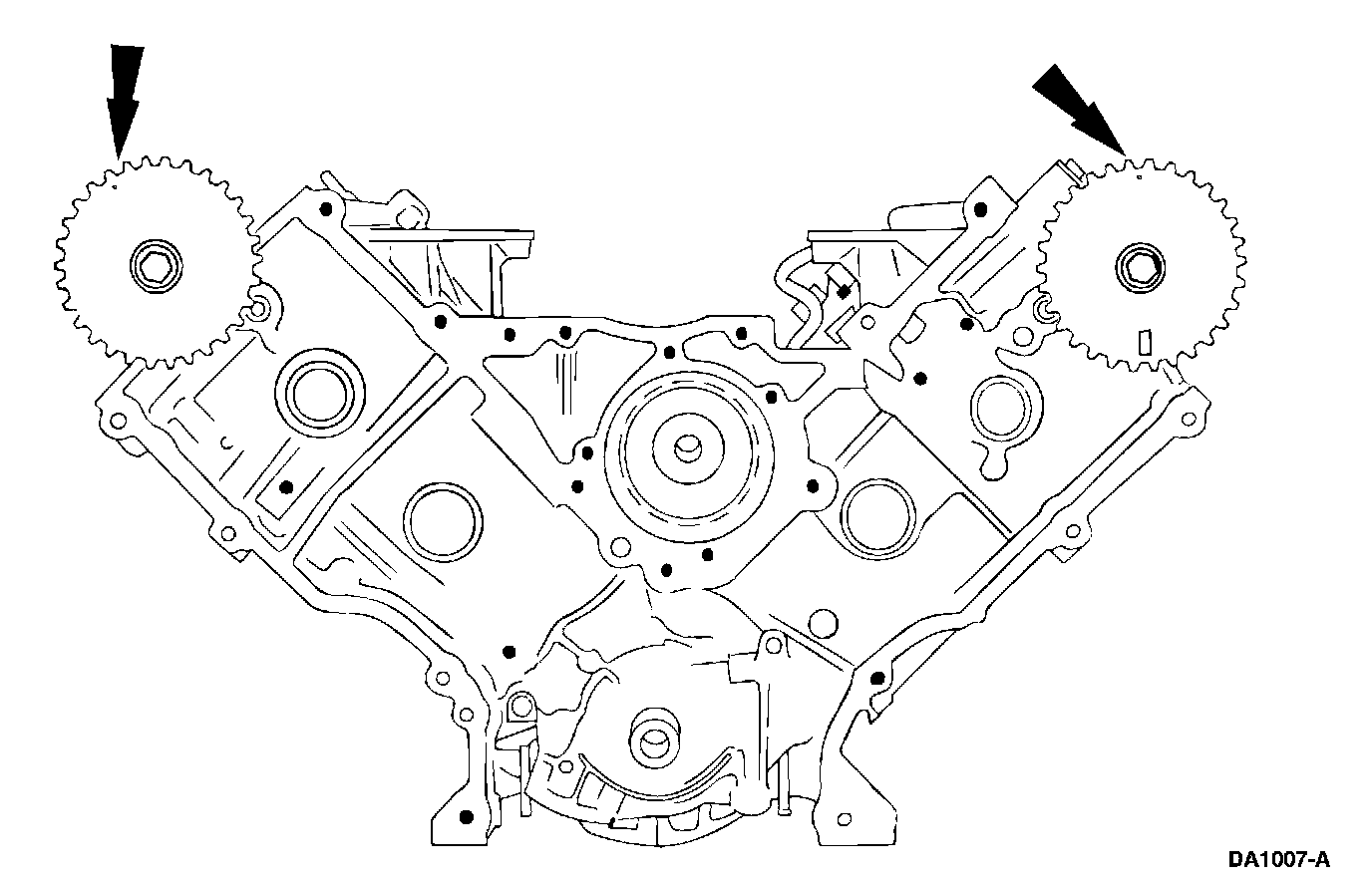 ^ Rotate the RH camshaft until the timing mark is approximately at 11 o'clock.