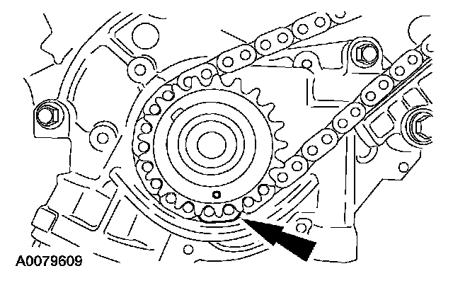 NOTE: If necessary, adjust the camshaft sprocket slightly to obtain timing mark alignment.