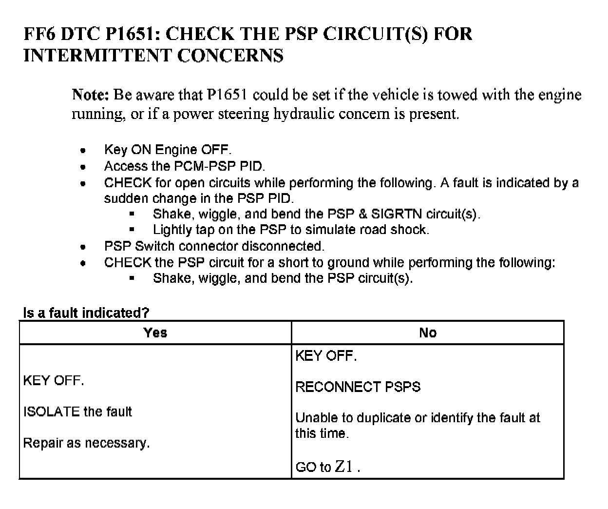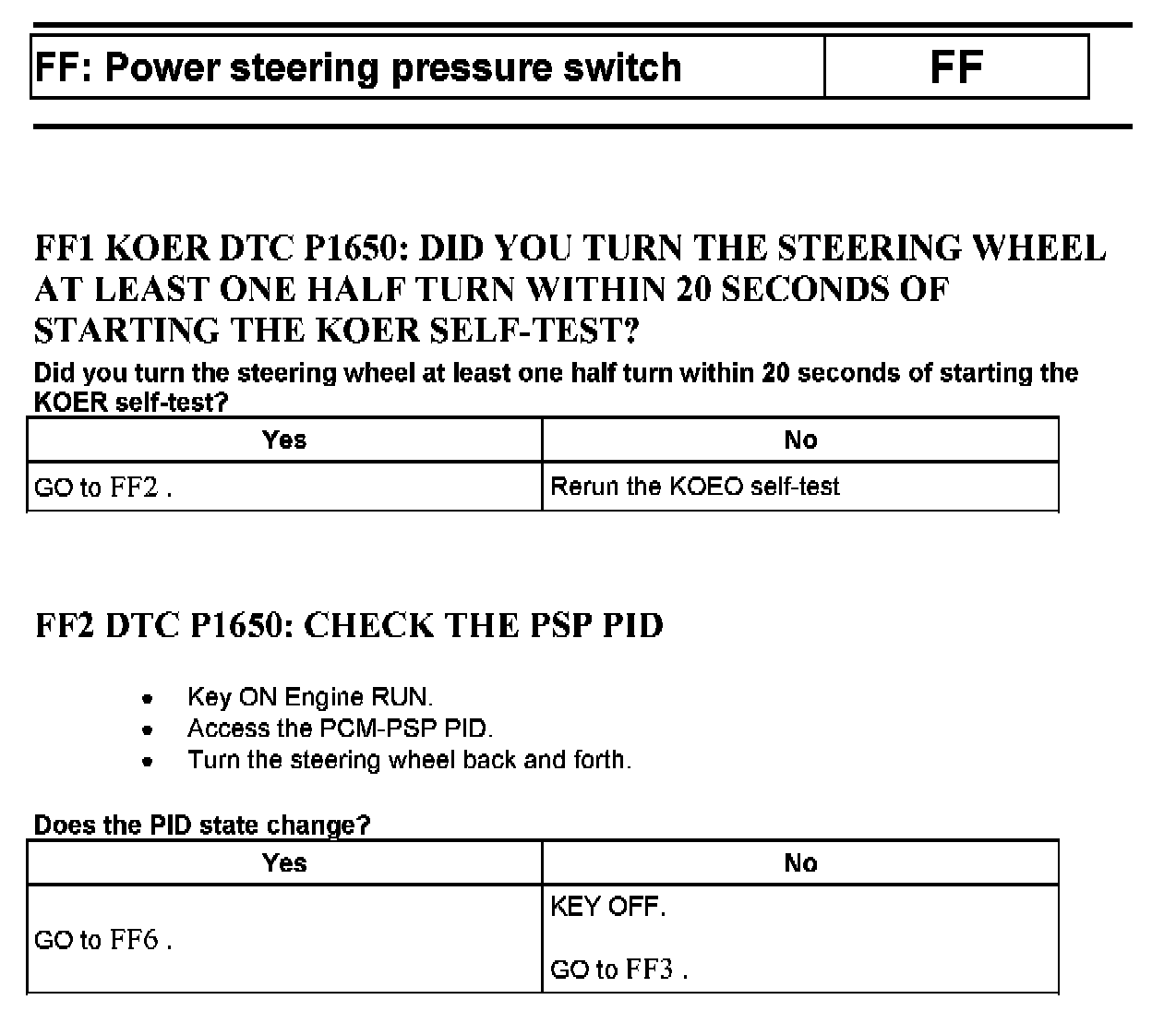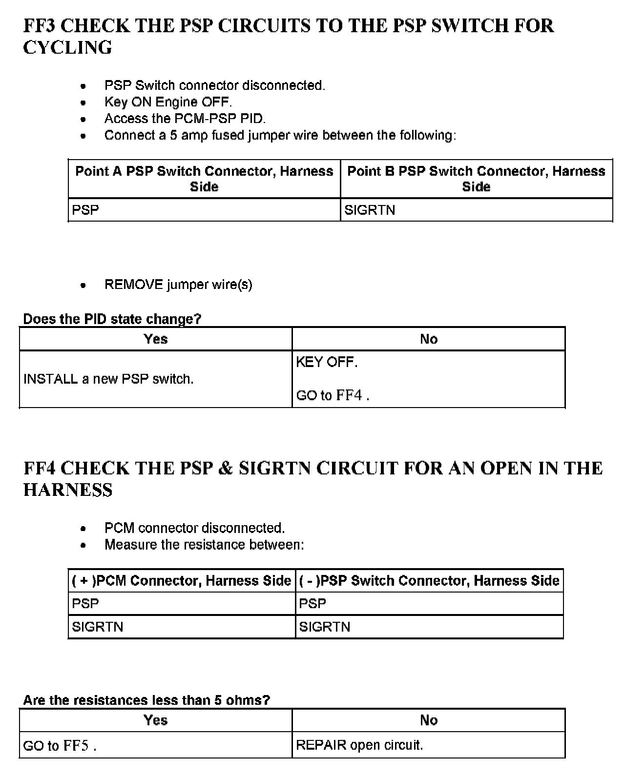 Tests FF: Power Steering Pressure (PSP) Switch