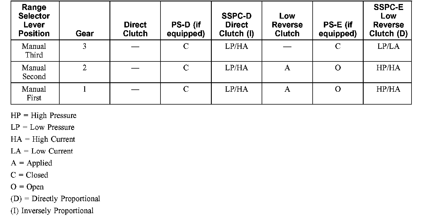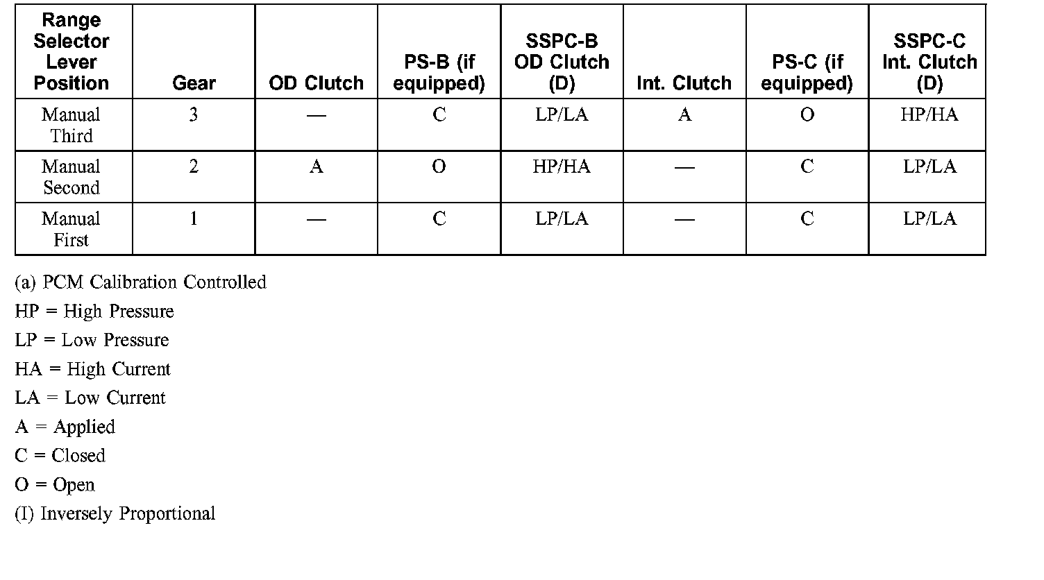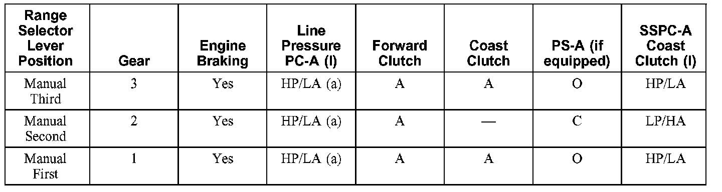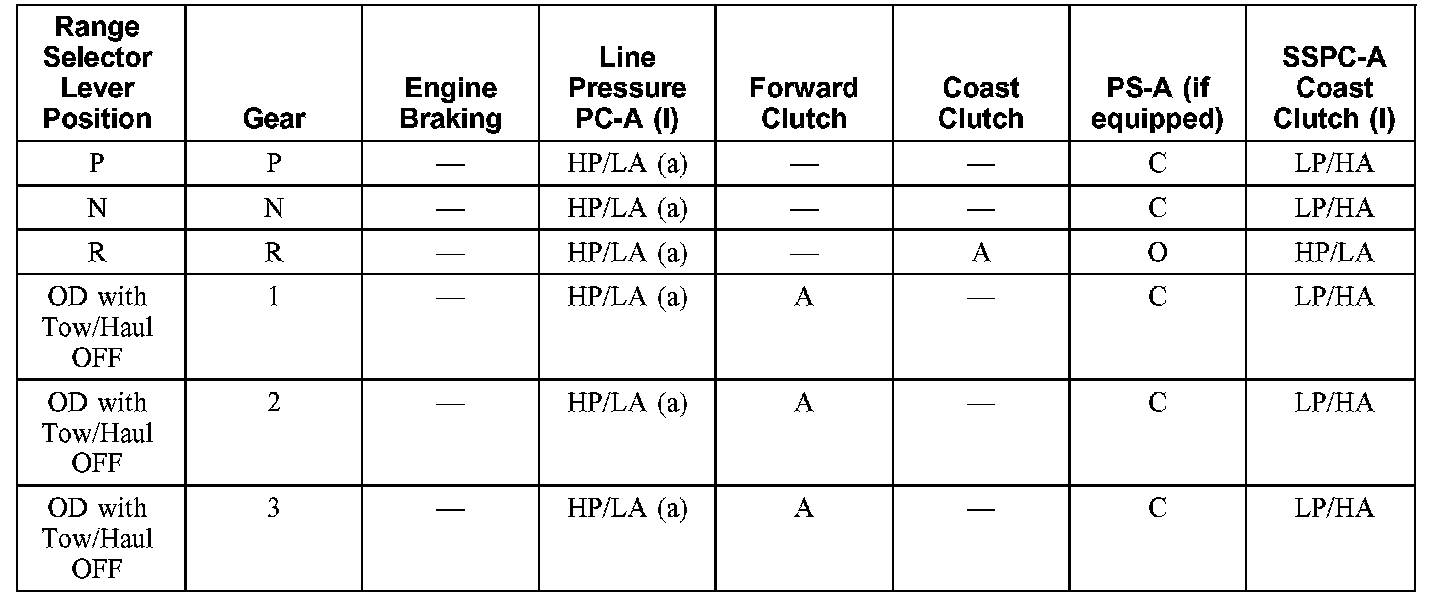 Band, Clutch, Solenoid, Switch Application ChartsBand, Clutch, Solenoid, Switch Application Chart (A)