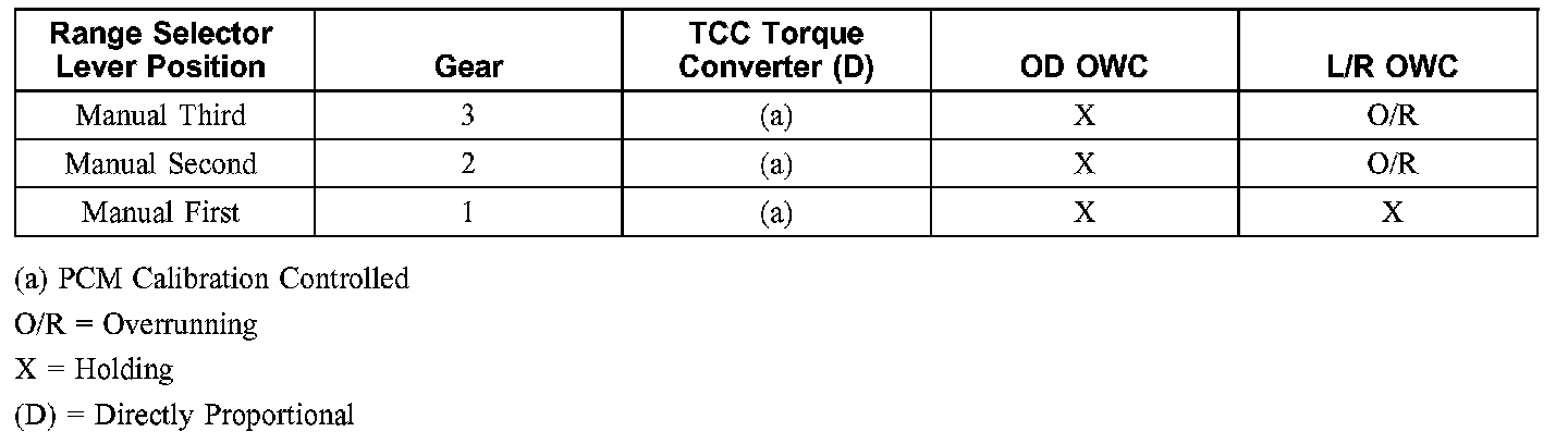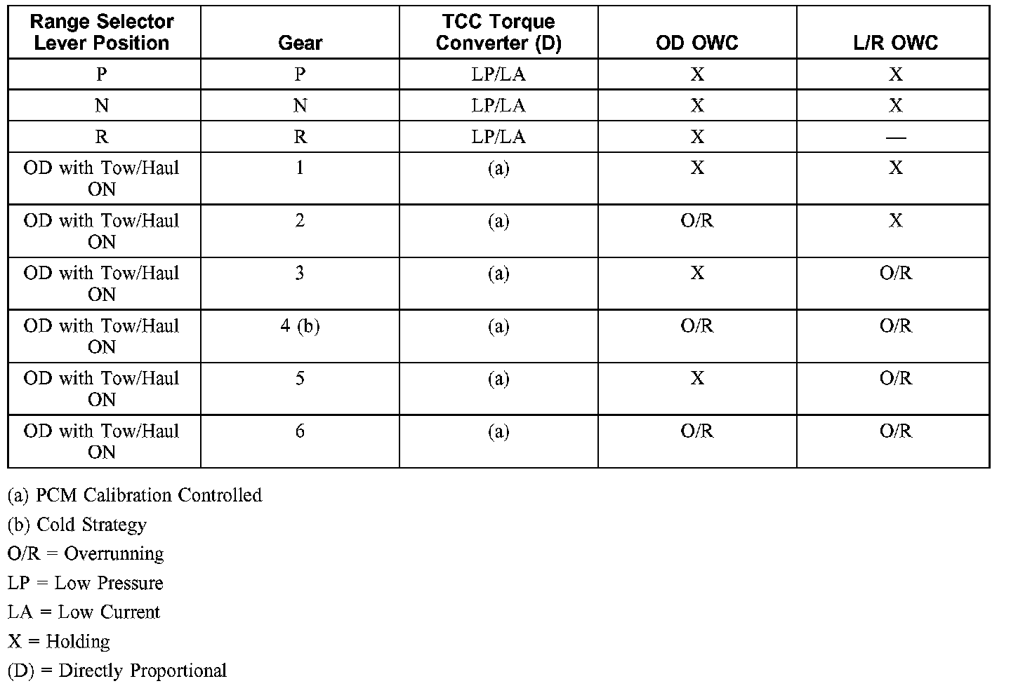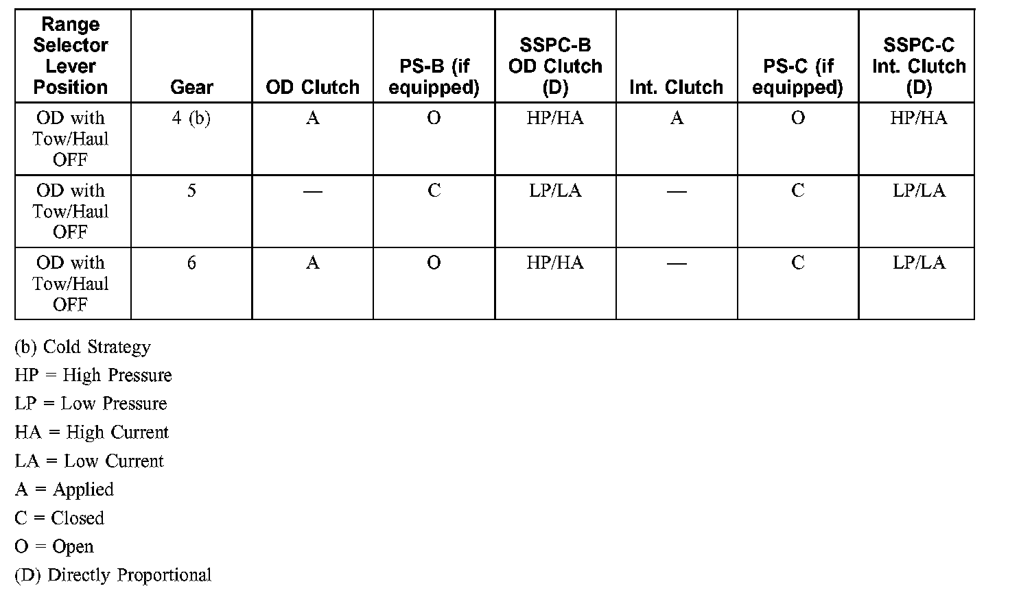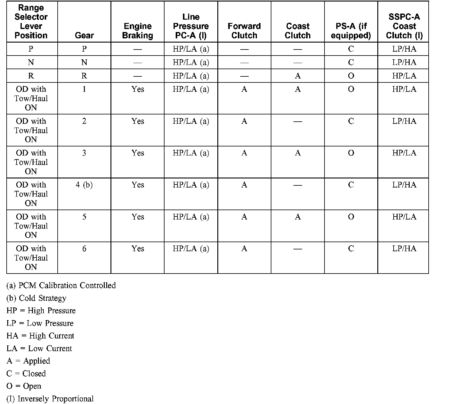 NOTE: The PTO may operate in any gear including PARK and NEUTRAL, does not require OD OWC. The TCC may engage in PARK and NEUTRAL with PTO engaged.