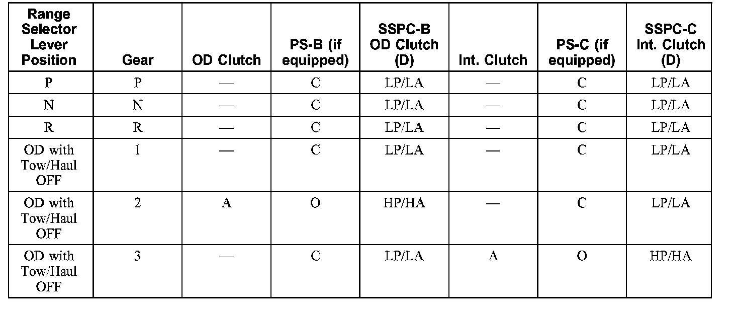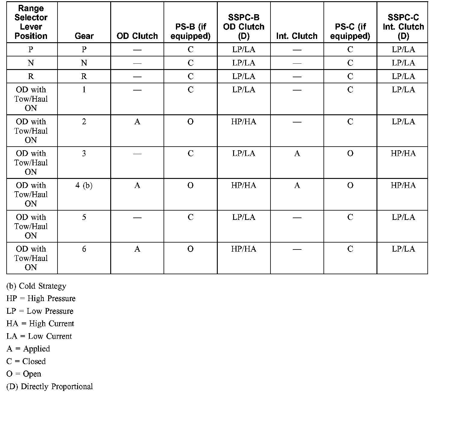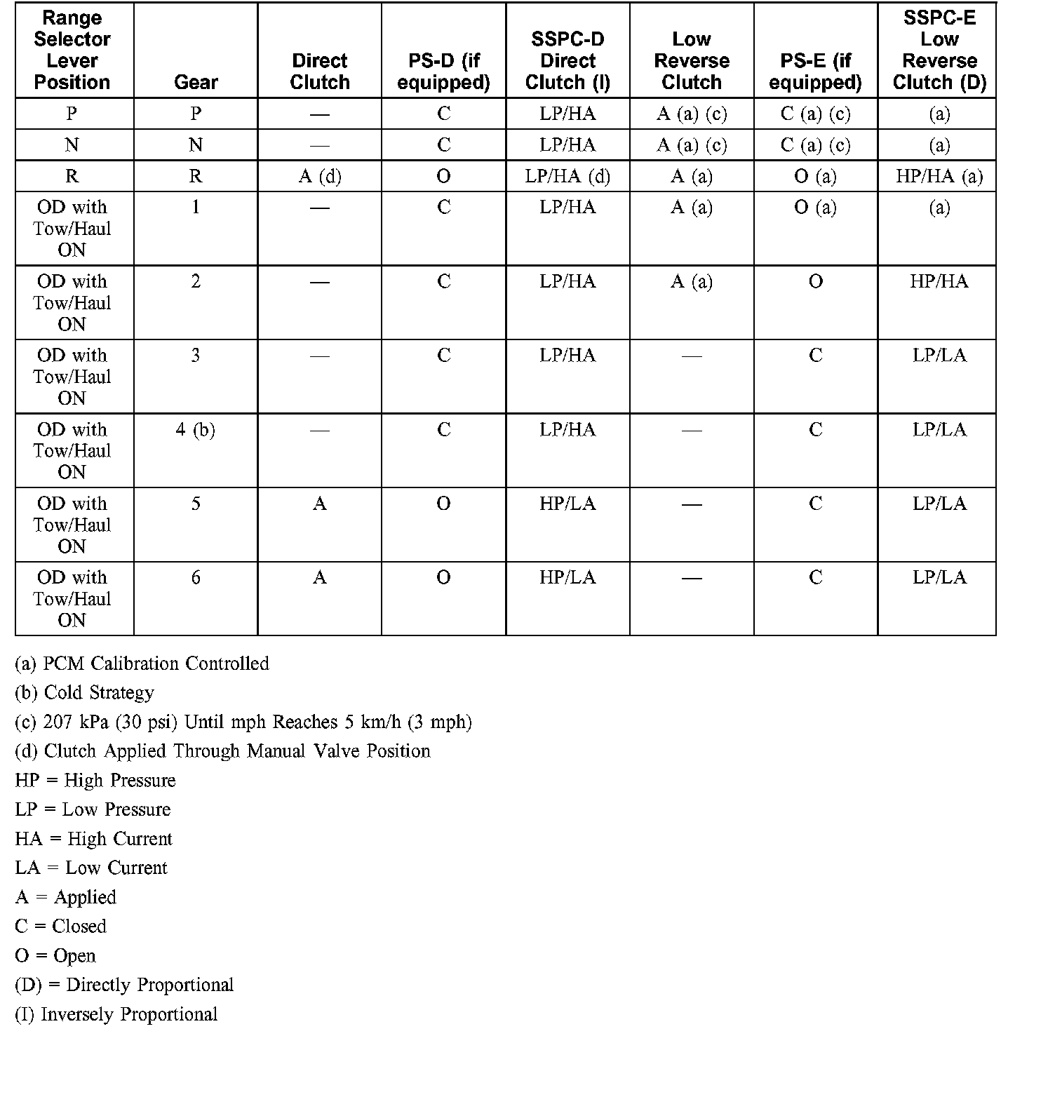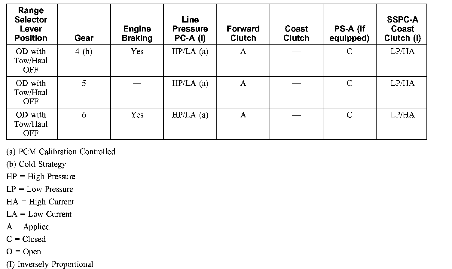 NOTE: The PTO may operate in any gear including PARK and NEUTRAL, does not require OD OWC. The TCC may engage in PARK and NEUTRAL with PTO engaged.