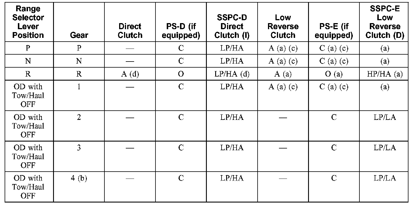 Band, Clutch, Solenoid, Switch Application Chart (D)