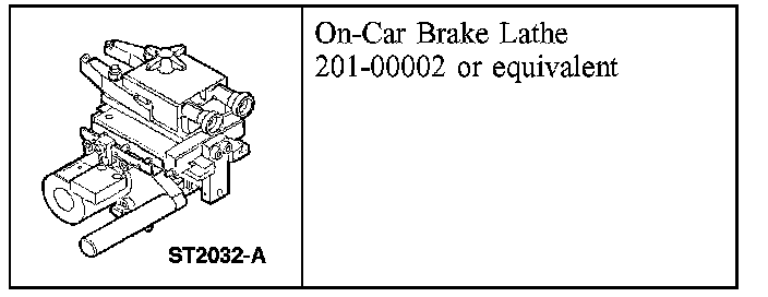 NOTE: Lateral runout and disc thickness variation measurements are not required because correct adjustment of the on-vehicle brake lathe will make sure that these dimensions are within specifications.