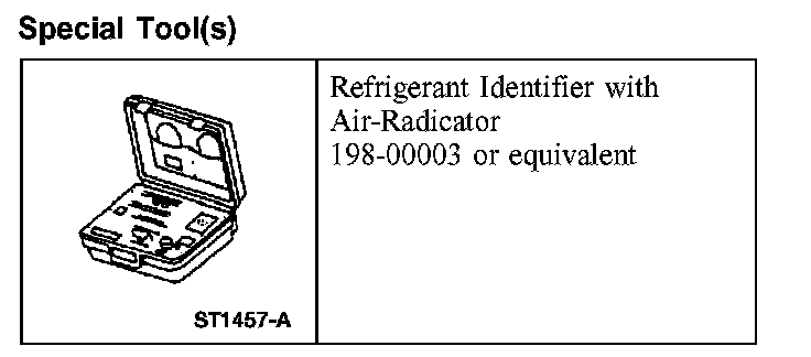 1. NOTE: An A/C refrigerant analyzer must be used to identify gas samples taken directly from the refrigeration system or storage containers prior to recovering or charging the refrigerant system.