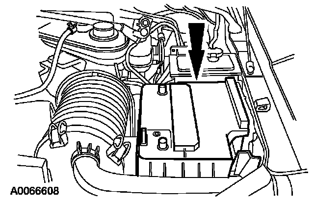 2. Disconnect the auxiliary battery positive cable (LH side of the engine compartment).