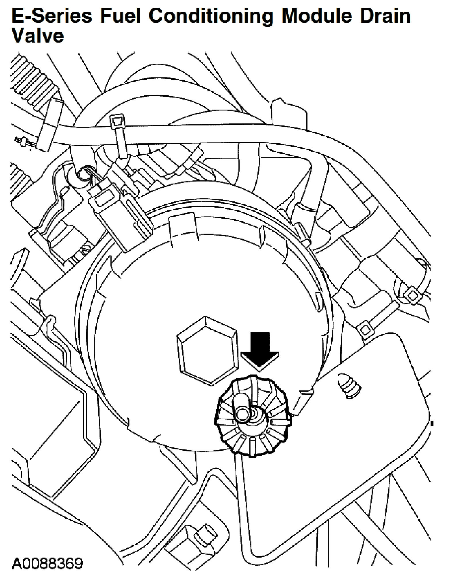 Open the drain valve on the fuel conditioning module and fill a clear container until it is half full. Close the drain valve.