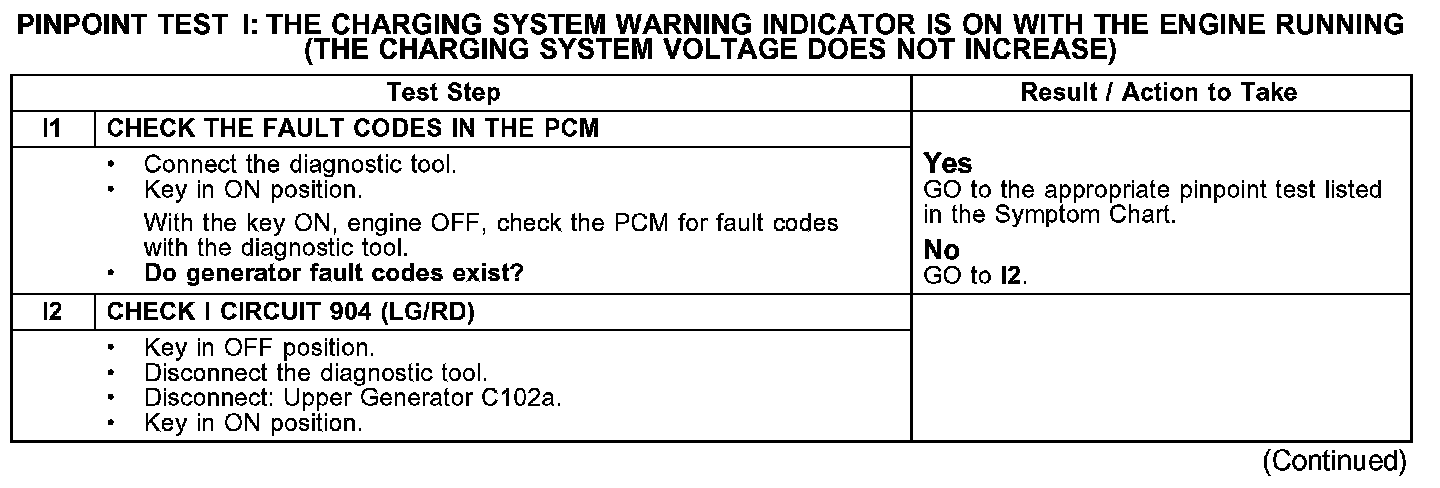 WARNING INDICATOR IS ON WITH THE ENGINE RUNNING (THE CHARGING SYSTEM VOLTAGE DOES NOT INCREASE)