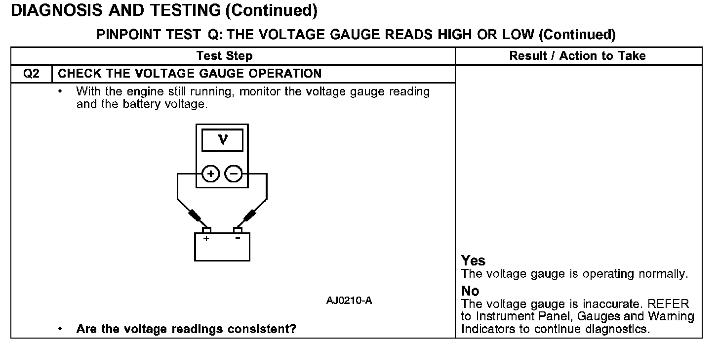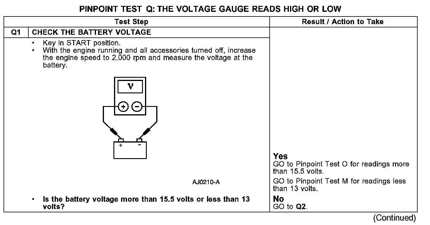 PINPOINT TEST Q: THE VOLTAGE GAUGE READS HIGH OR LOW
