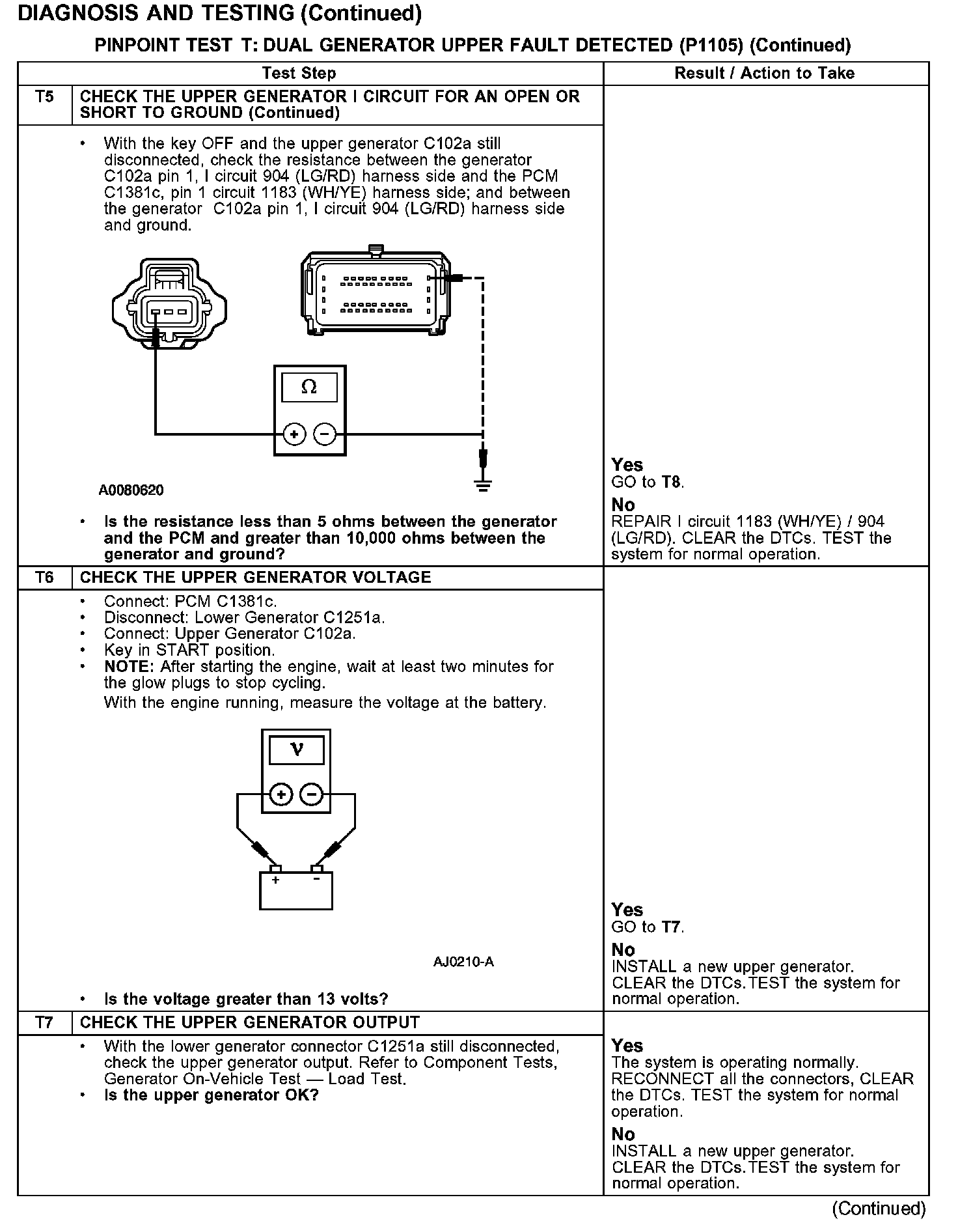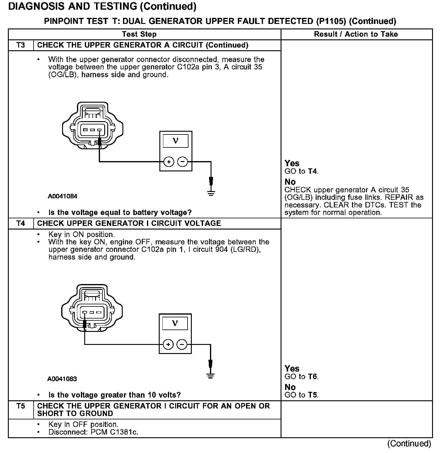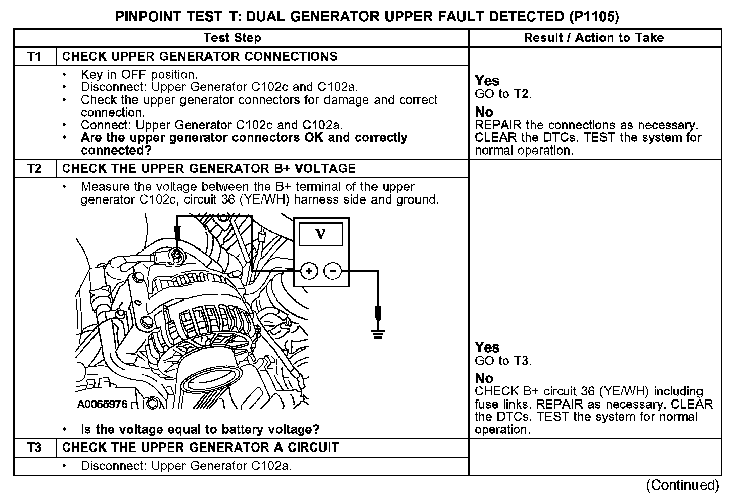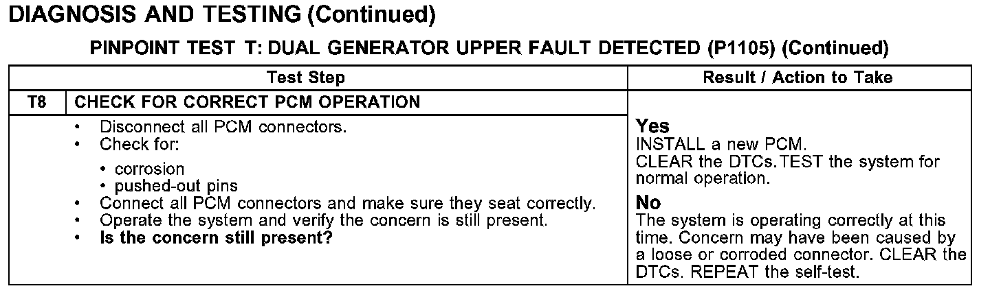 PINPOINT TEST T: DUAL GENERATOR UPPER FAULT DETECTED (P1105)