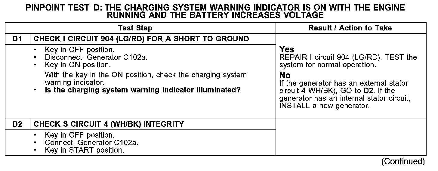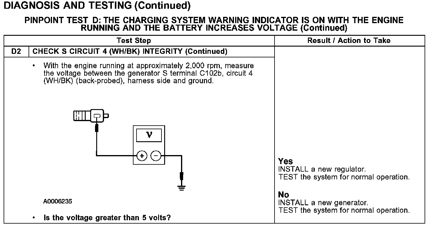 WARNING INDICATOR IS ON WITH THE ENGINE RUNNING AND THE BATTERY INCREASES VOLTAGE