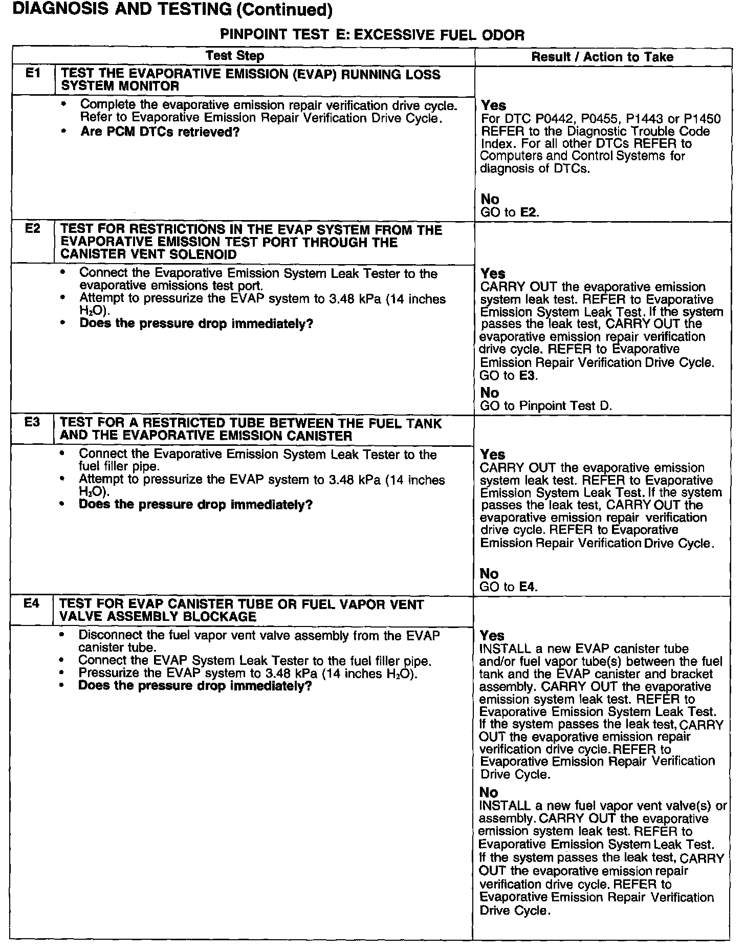 PINPOINT TEST E: EXCESSIVE FUEL ODOR