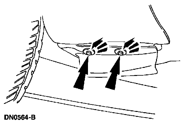 7. Remove the bolts securing the lower rear of the front fender.