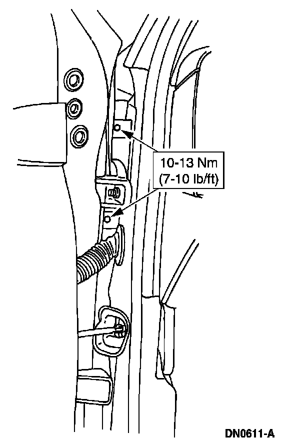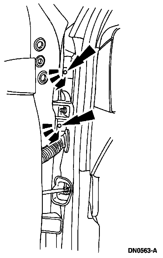 10. Open the door, then remove the fender retaining bolts.