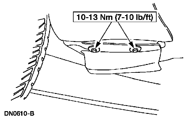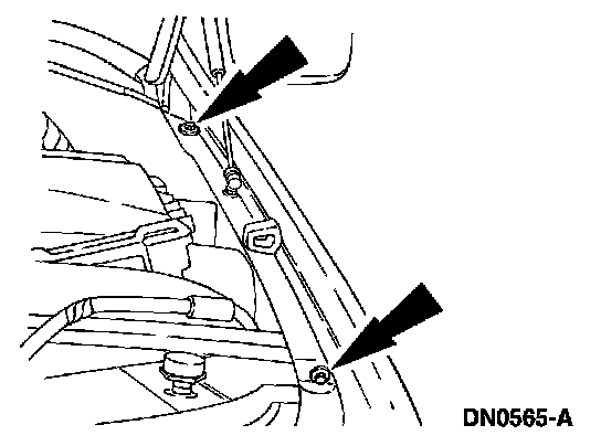 8. Remove the fender-to-radiator grille opening support retaining bolts.