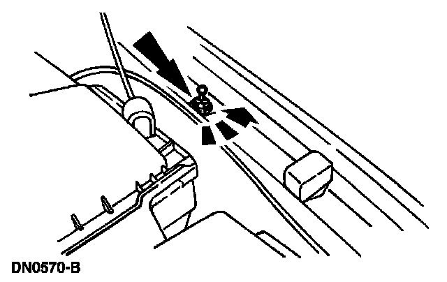 12. Remove the hood support bolt.