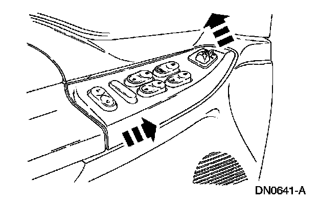 4. Release the front and back retaining clips on the door lock control switch and remove the switch.
