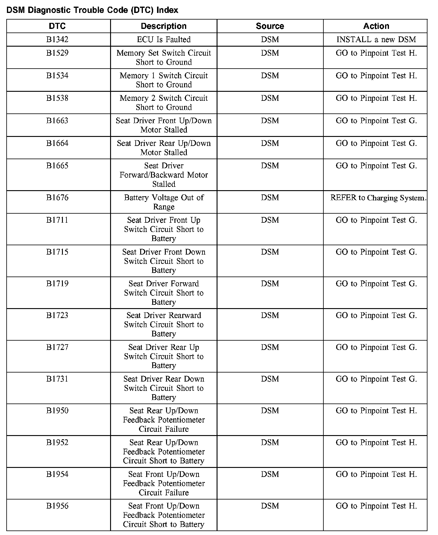 DTC Index B1342 - B1956: