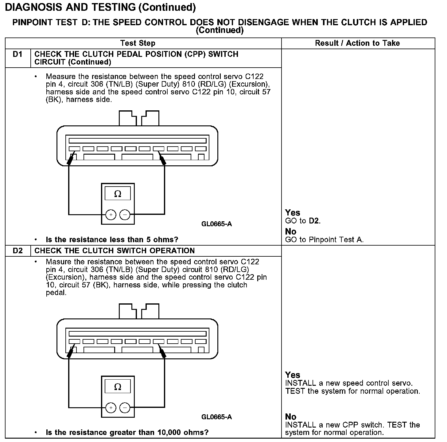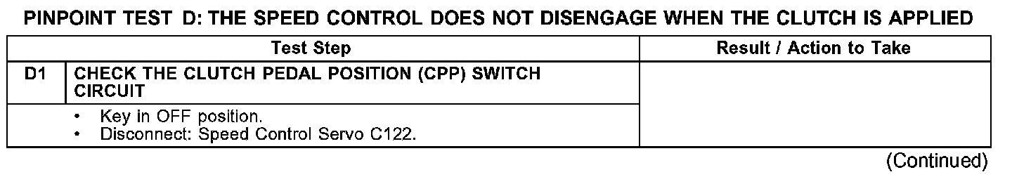 PINPOINT TEST D: THE SPEED CONTROL DOES NOT DISENGAGE WHEN THE CLUTCH IS APPLIED