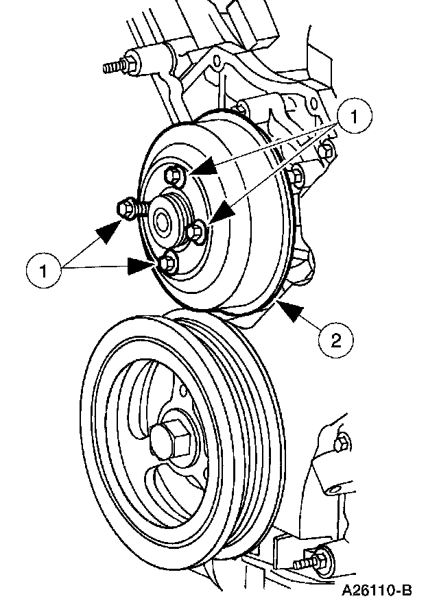 2 Remove the coolant pump pulley.