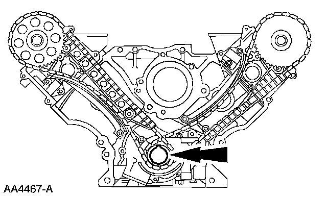 ^ Remove the LH timing chain and crankshaft sprocket(s).