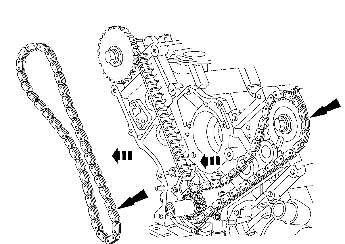 ^ Remove the RH timing chain from the camshaft sprocket.
