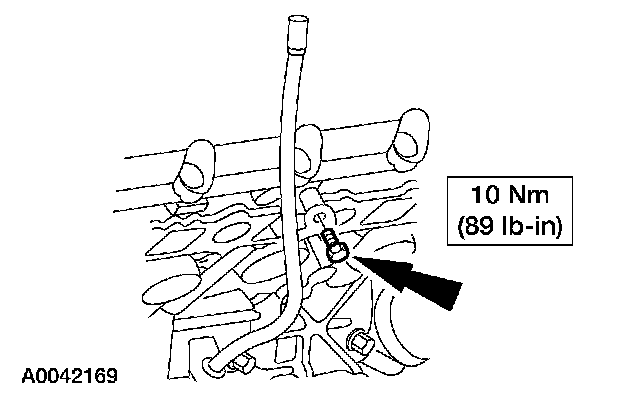 46. Remove the bolt and the oil level indicator tube.