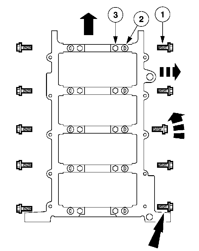 1 Remove and discard the cross-mounted main cap bolts.