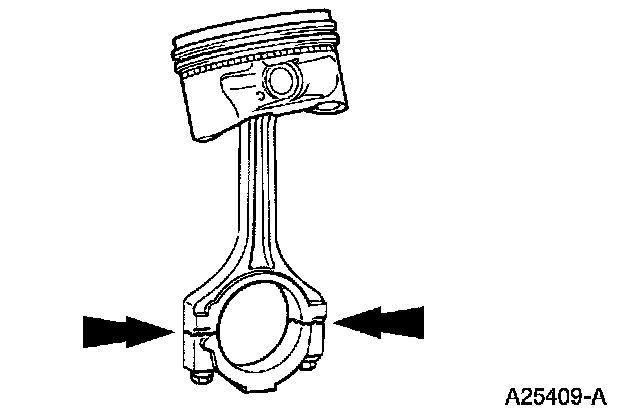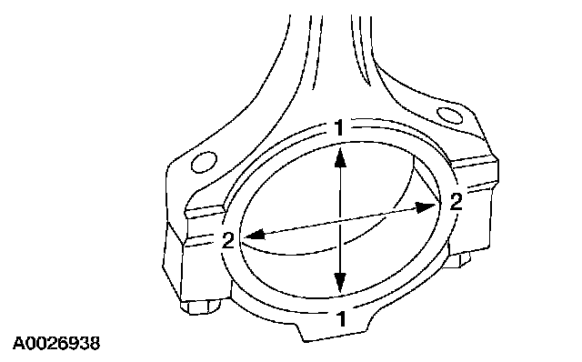 1. Tighten the bolts to specification, then measure the bore in two directions. The difference is the connecting rod bore out-of-round. Verify the out-of-round is within specification.