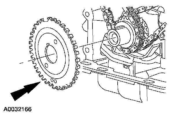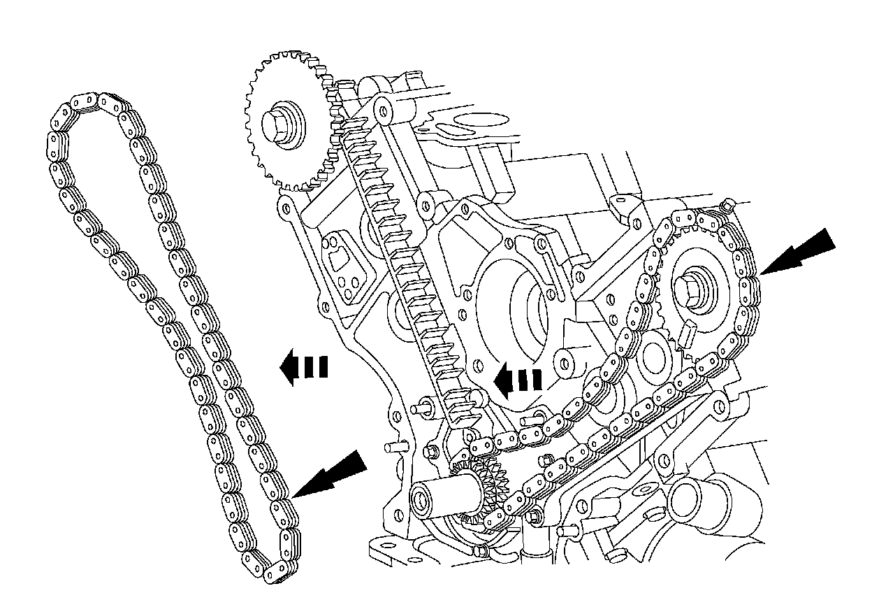 ^ Remove the RH timing chain and from the crankshaft sprocket.