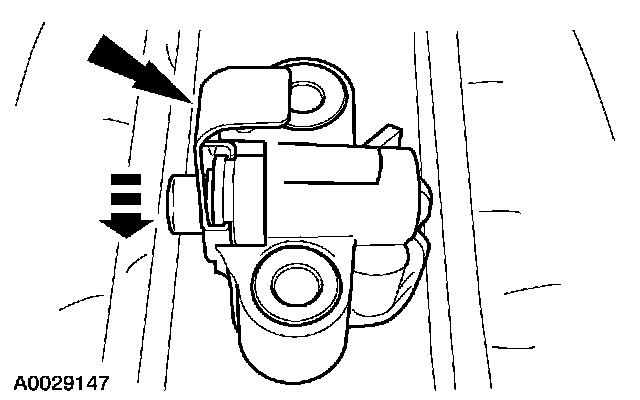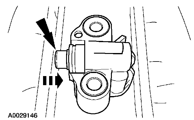 2. Install a retaining clip on the tensioner to hold the plunger in during installation.
