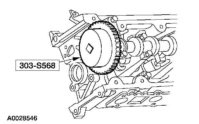 1 Rotate the LH camshaft with the Camshaft Positioning Tool until the timing mark is approximately at 12 o'clock.