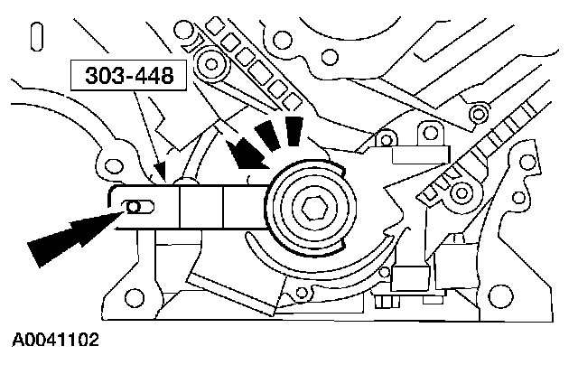 7. NOTE: Slightly loosen the camshaft holding tools to allow slight camshaft movement.