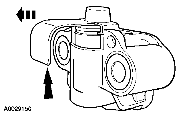14. Remove the retaining clip from the LH timing chain tensioner.
