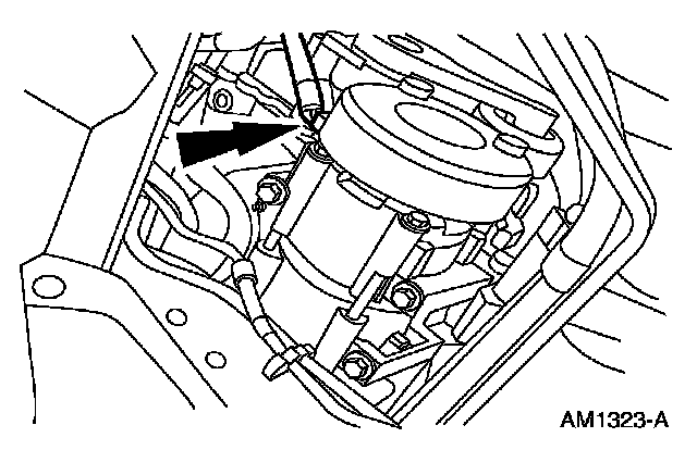10. NOTE: The lower rear bolt must be removed with the A/C compressor.