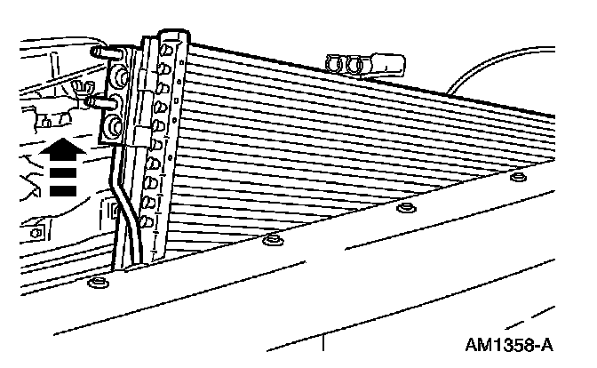 4. Disconnect the A/C condenser core inlet and outlet lines.