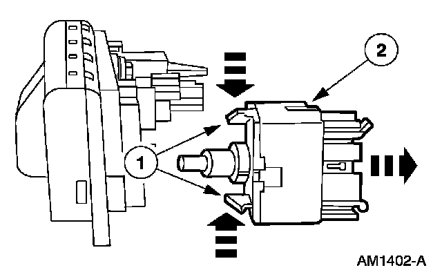 4. Depress the tabs and remove the blower motor control switch.