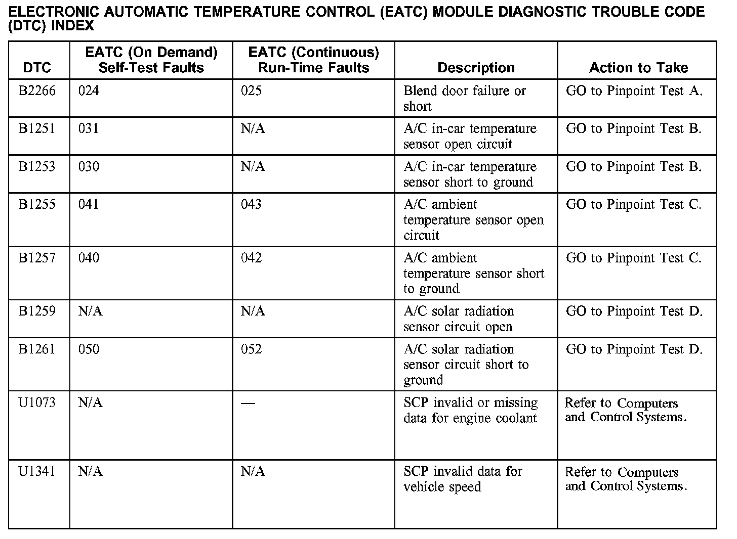 EATC Module Diagnostic Trouble Code (DTC) Index