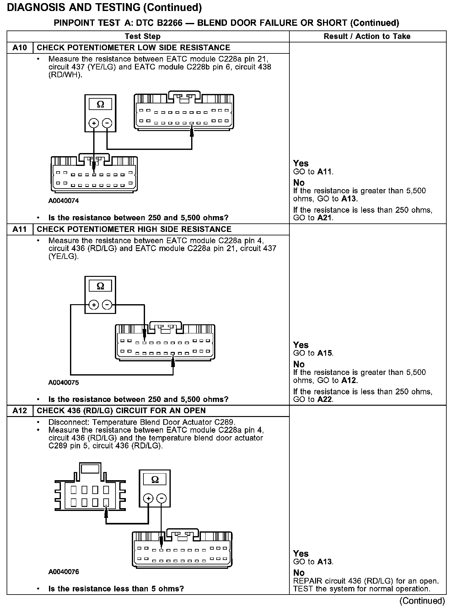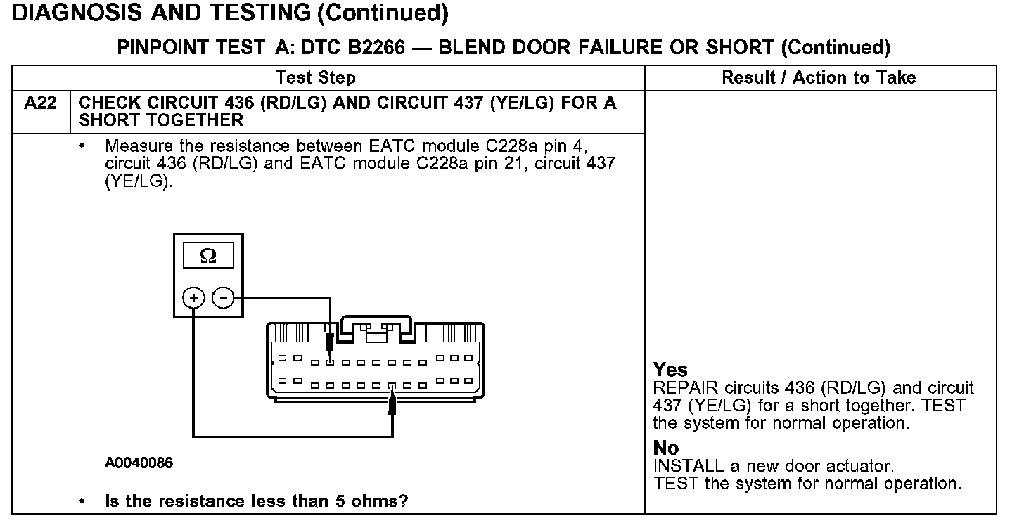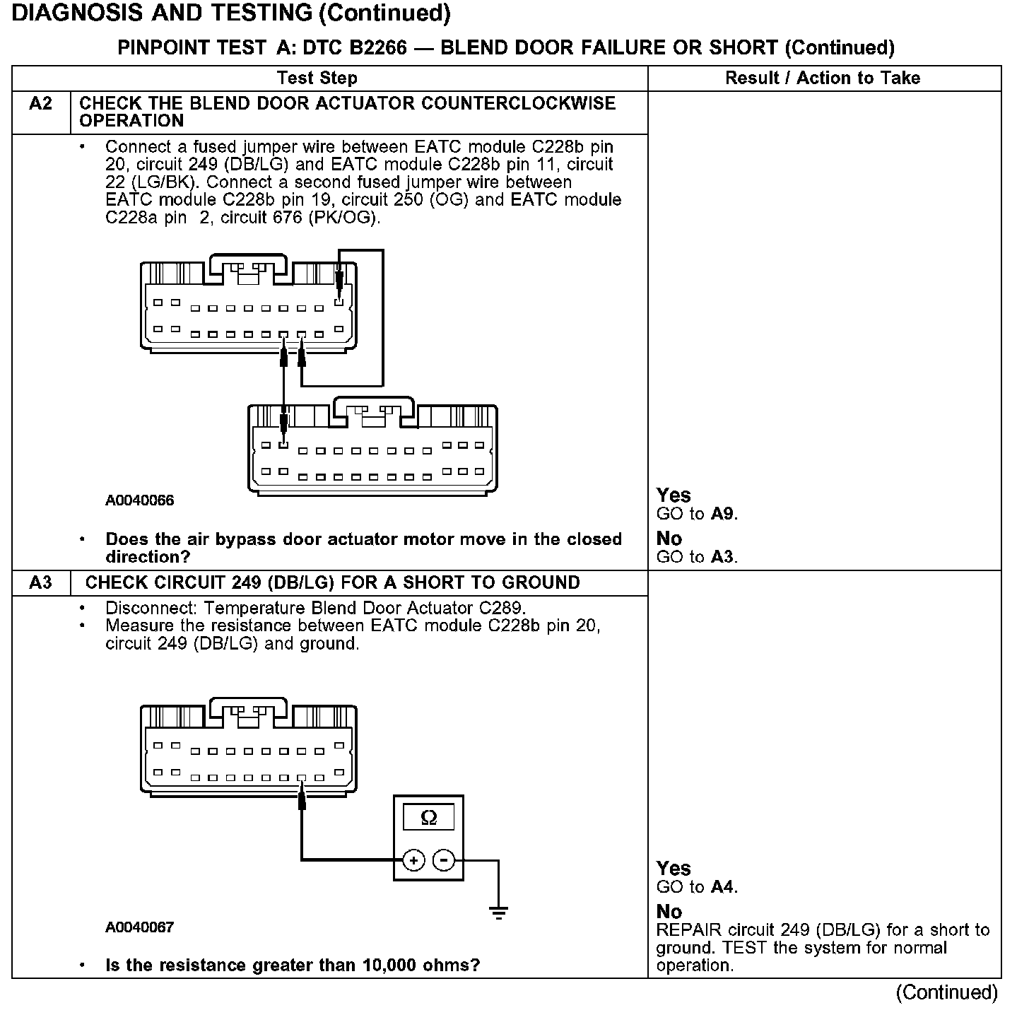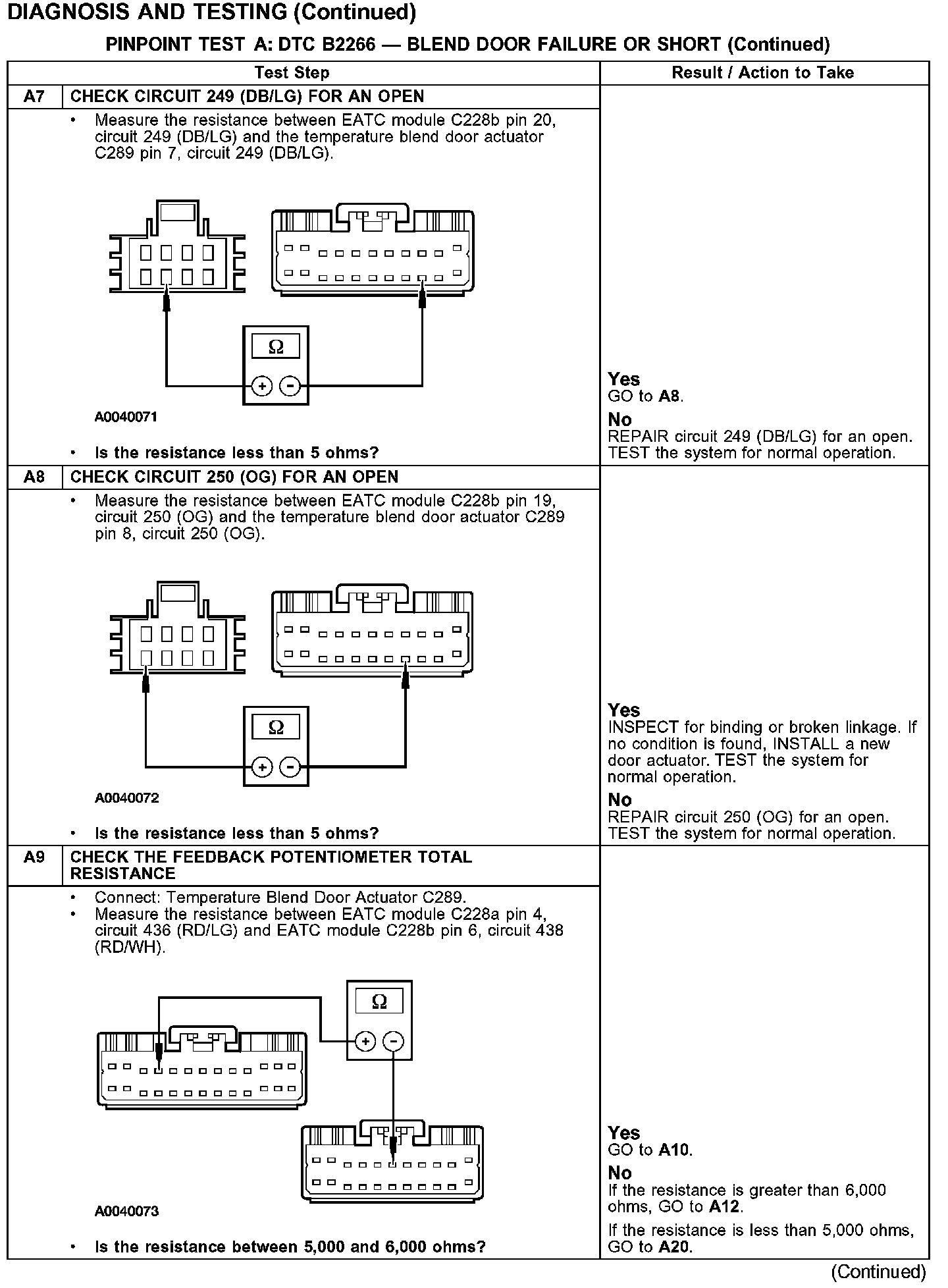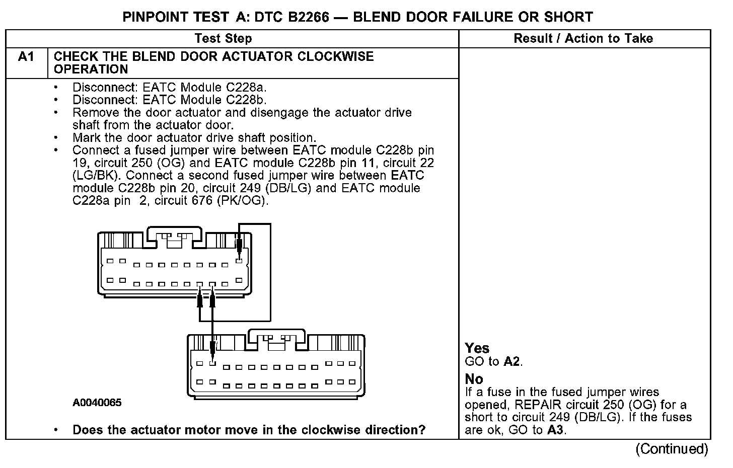 PINPOINT TEST A: DTC B2266 - BLEND DOOR FAILURE OR SHORT