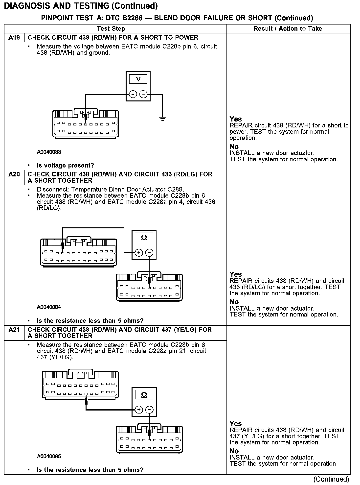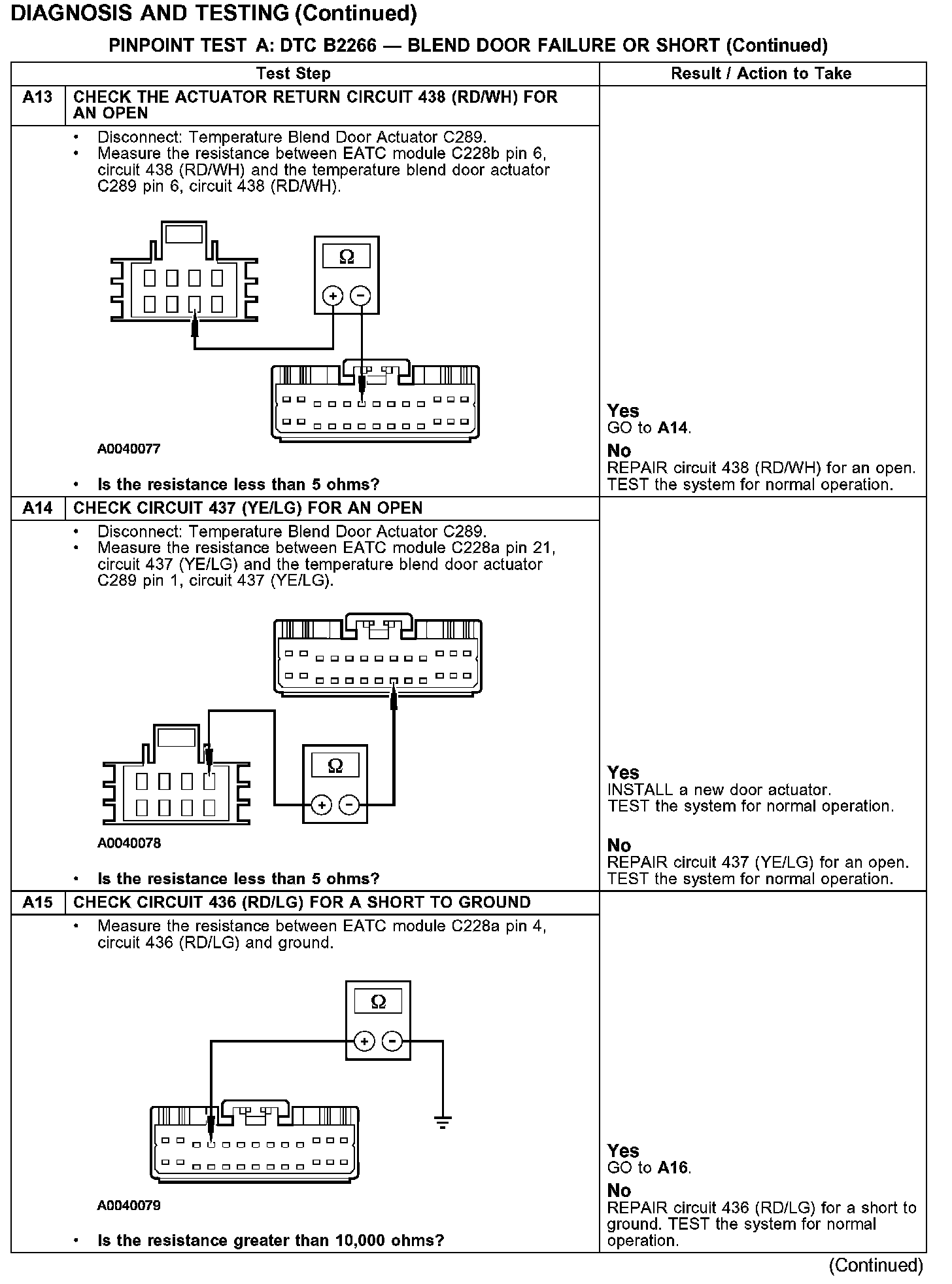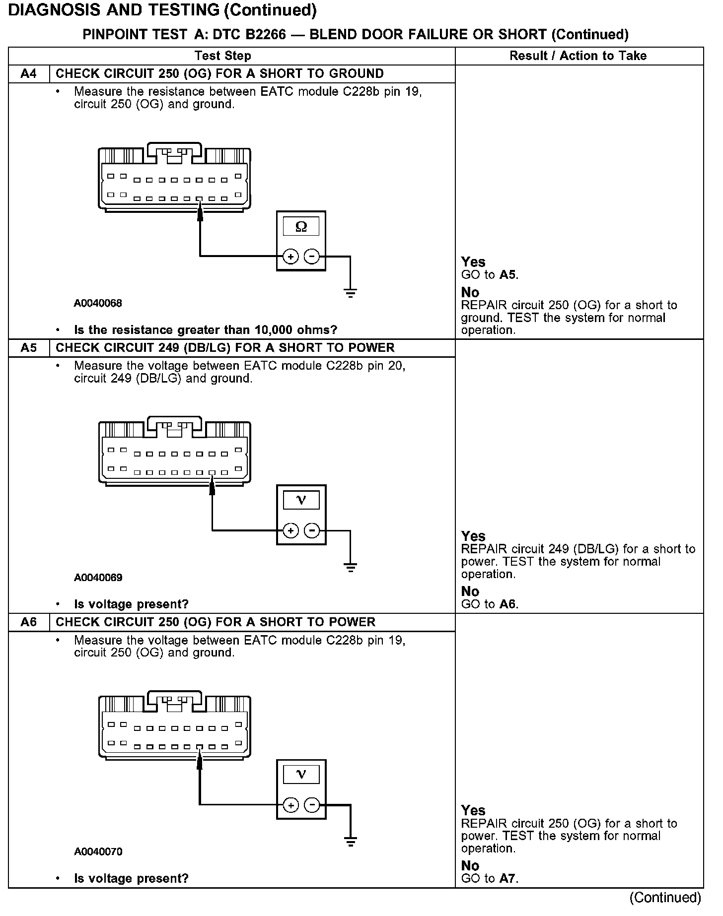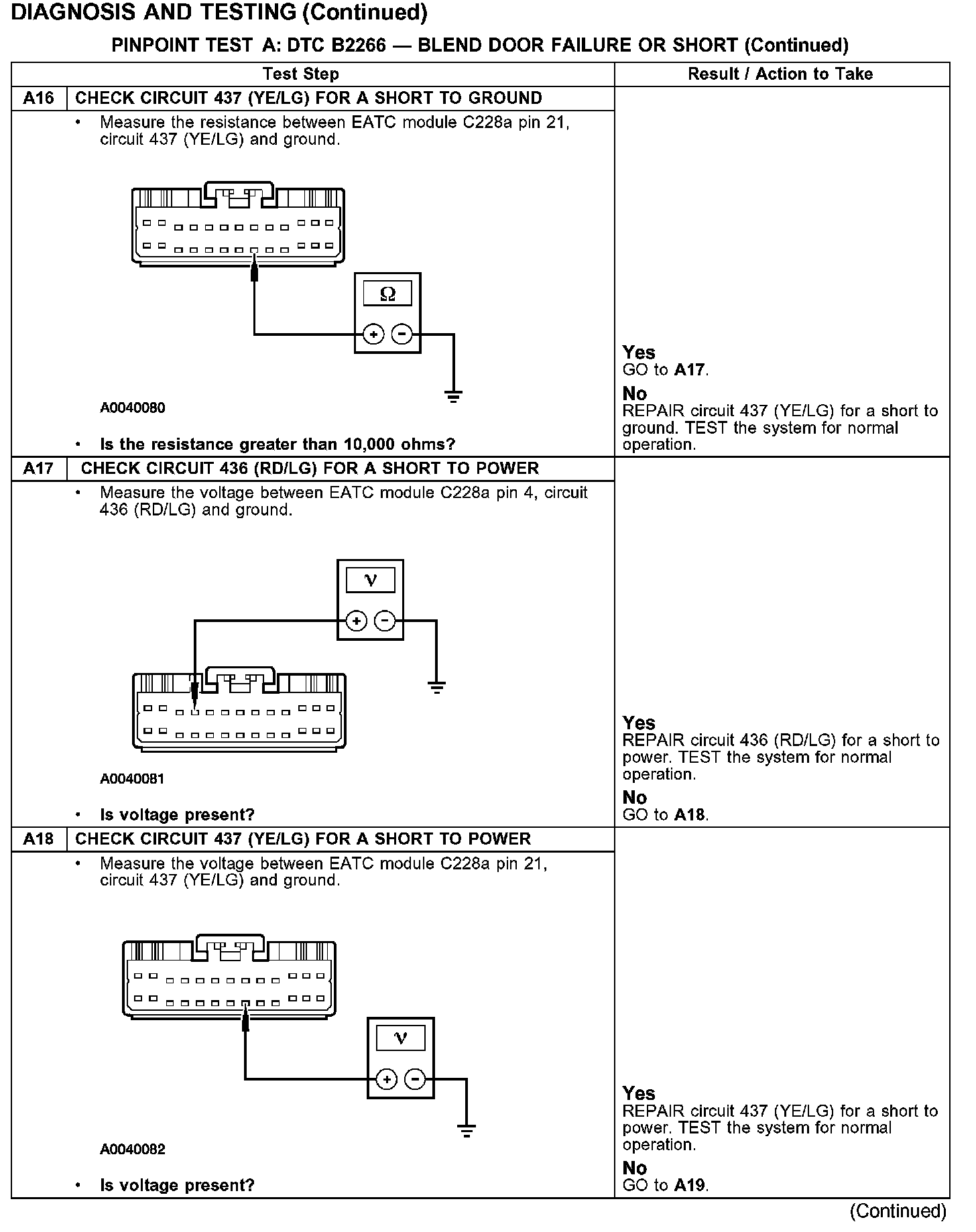 PINPOINT TEST A: DTC B2266 - BLEND DOOR FAILURE OR SHORT