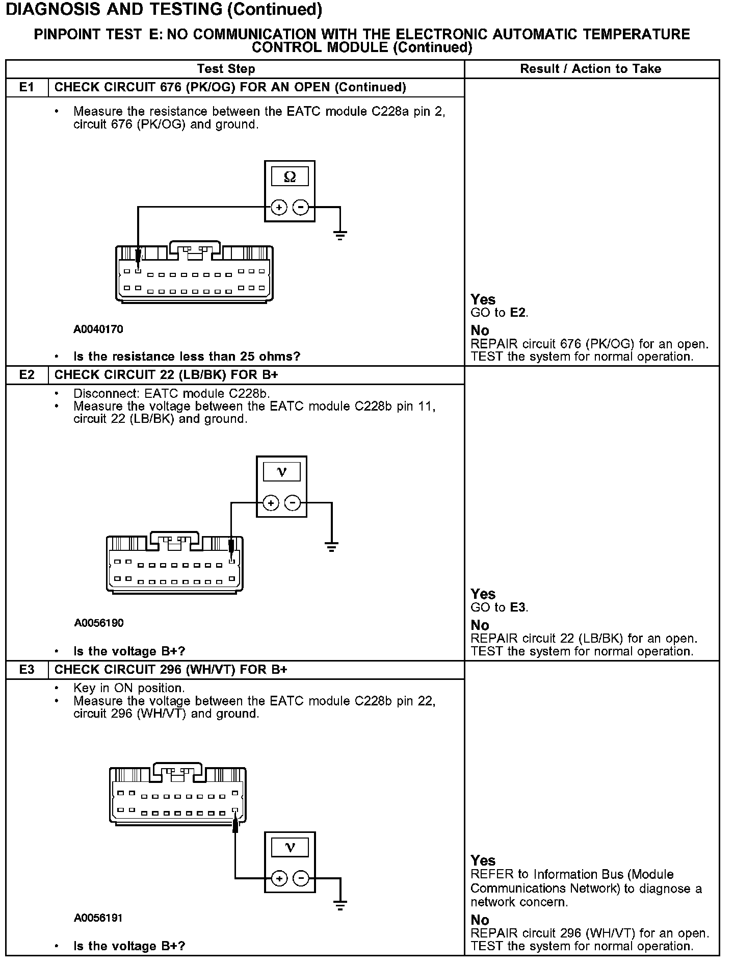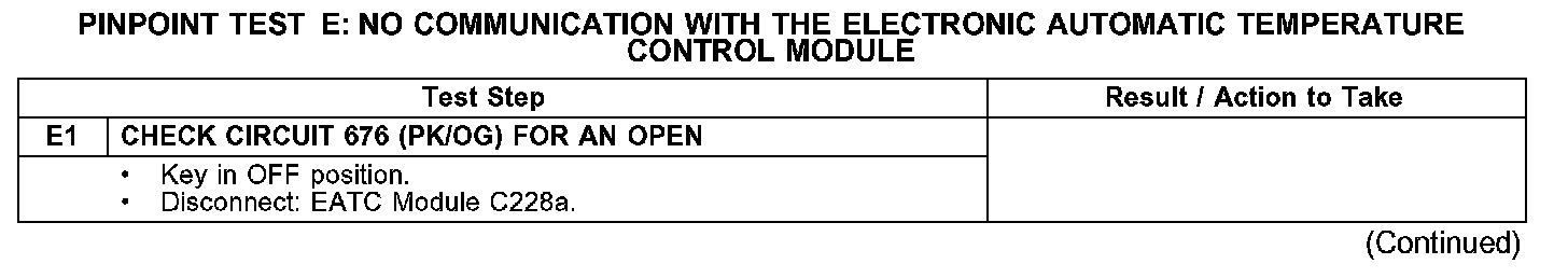 PINPOINT TEST E: NO COMMUNICATION WITH THE ELECTRONIC AUTOMATIC TEMPERATURE CONTROL MODULE