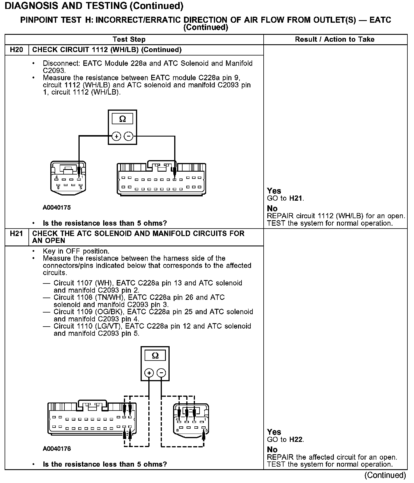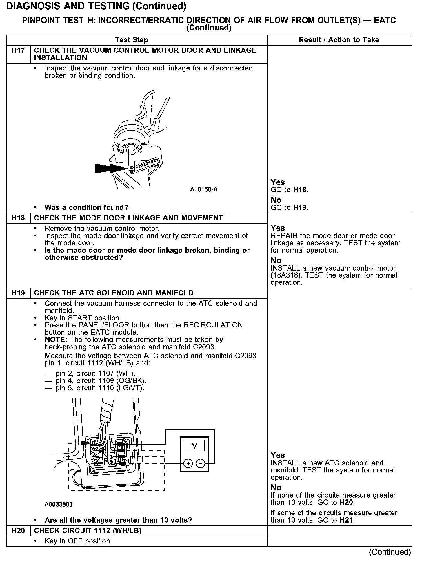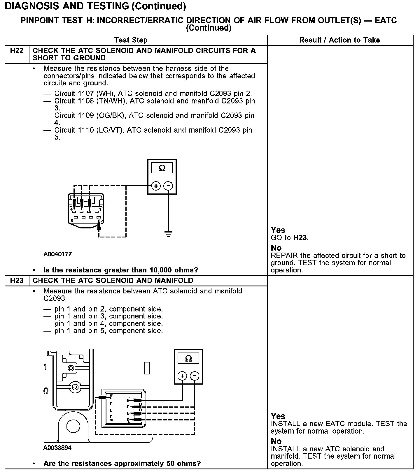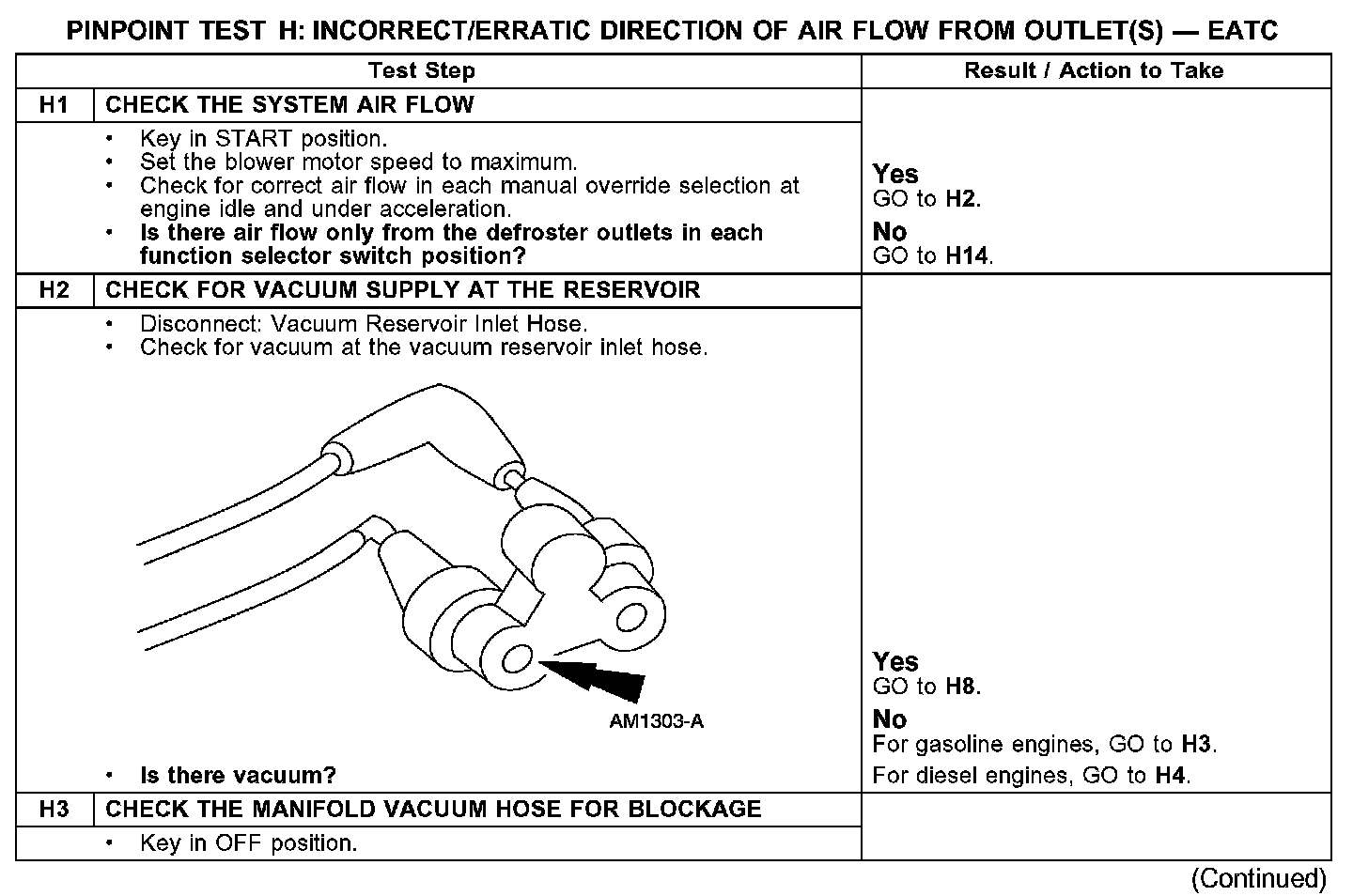 PINPOINT TEST H: INCORRECT/ERRATIC DIRECTION OF AIR FLOW FROM OUTLET(S) - EATC