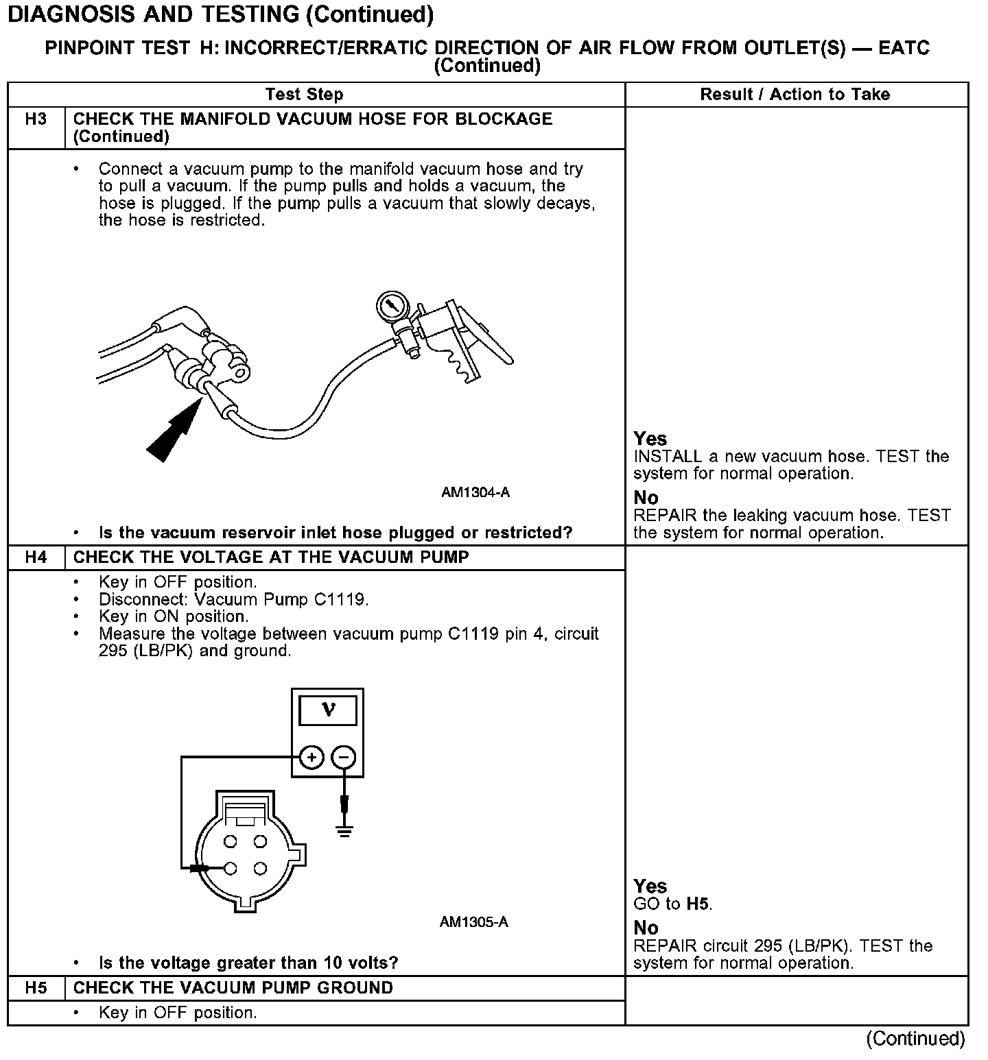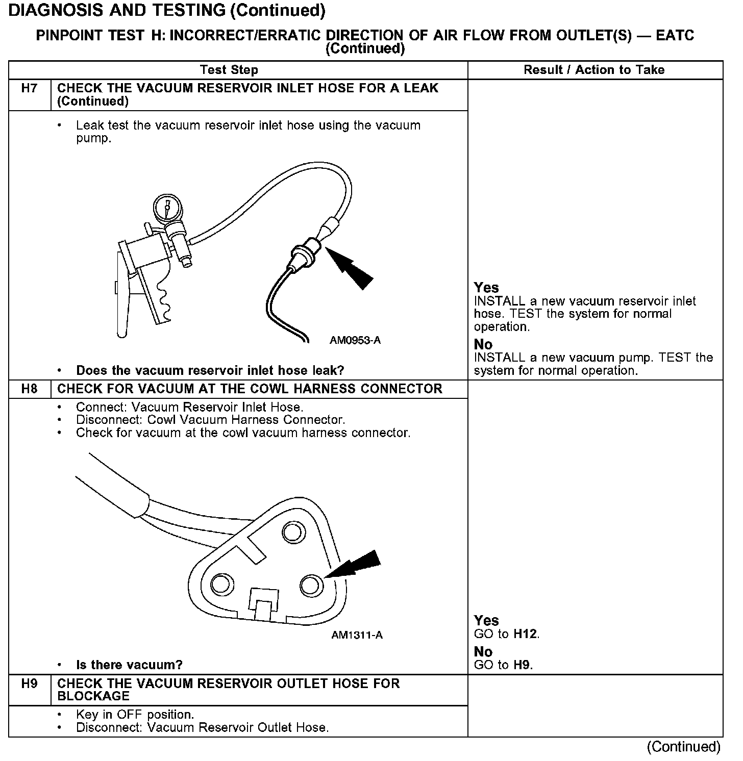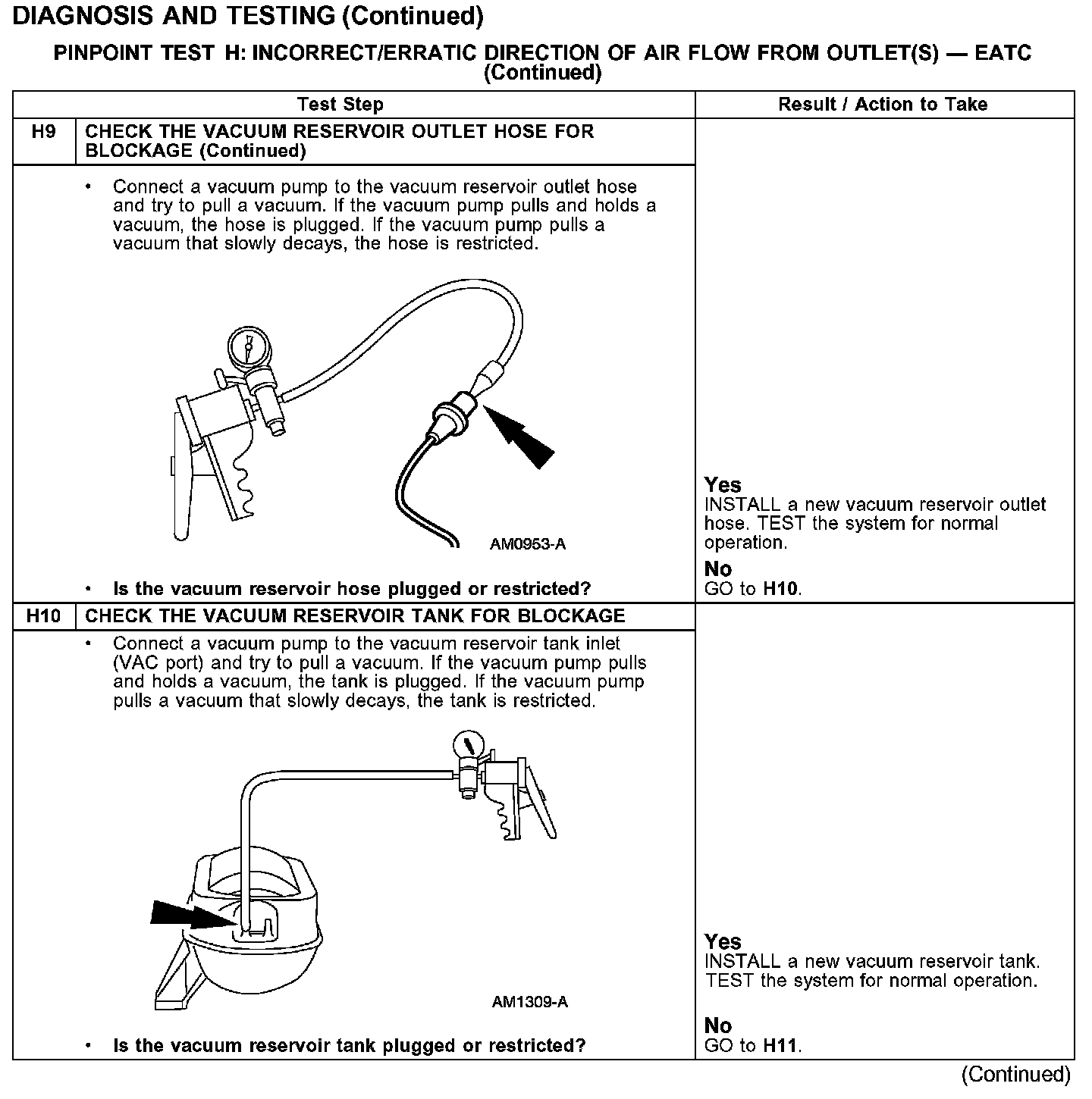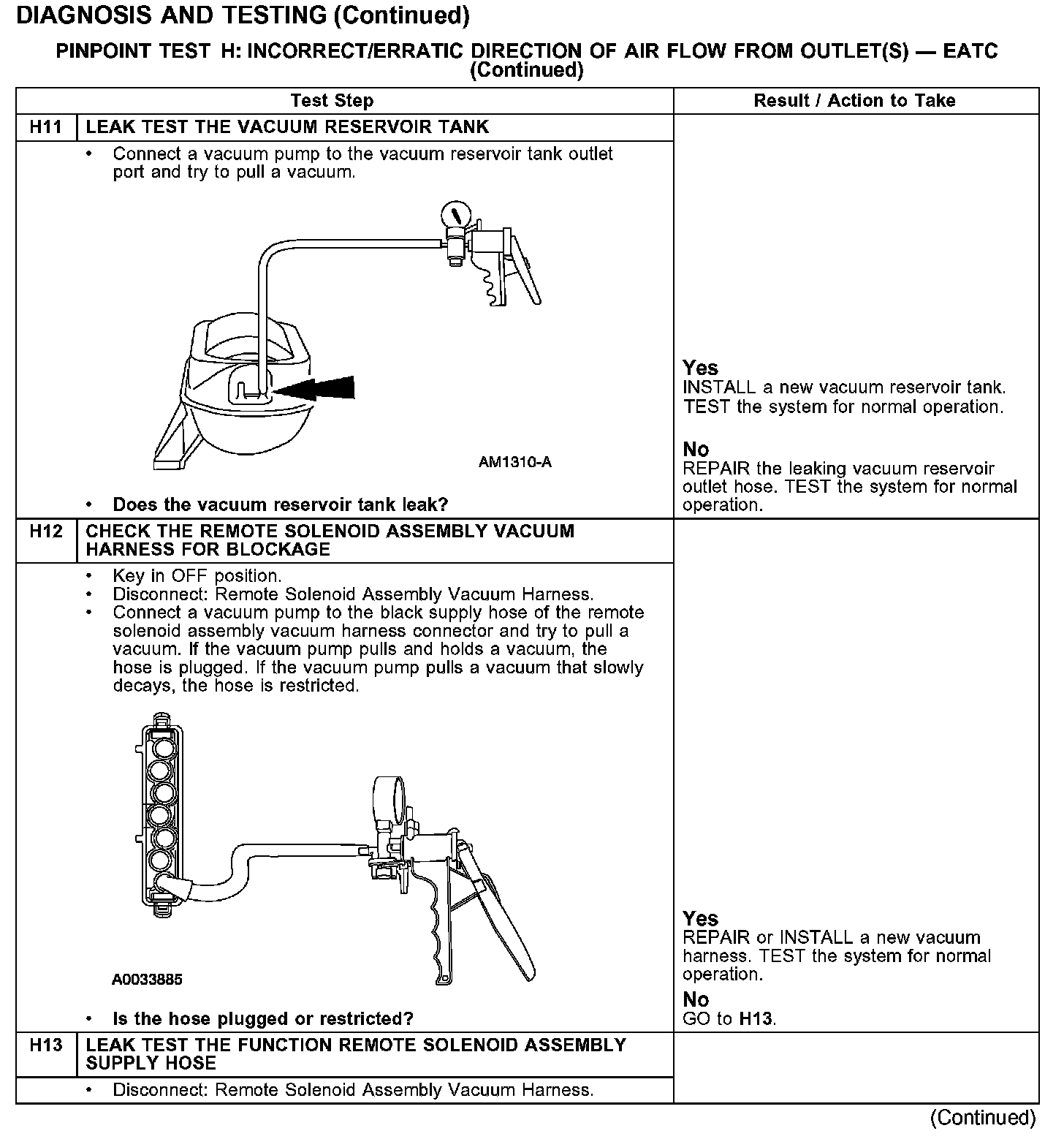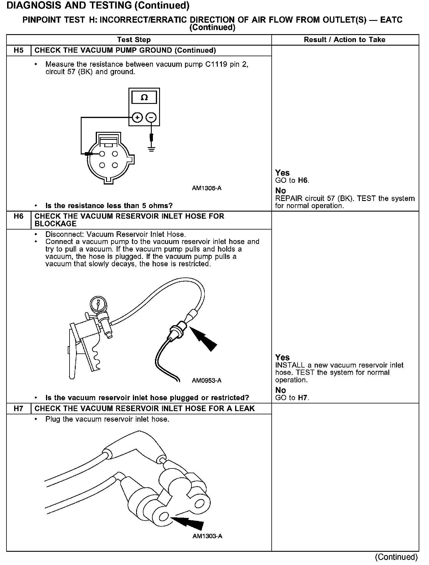 PINPOINT TEST H: INCORRECT/ERRATIC DIRECTION OF AIR FLOW FROM OUTLET(S) - EATC