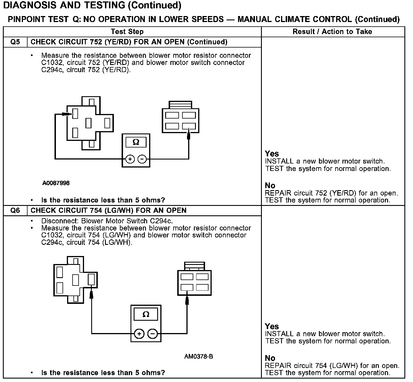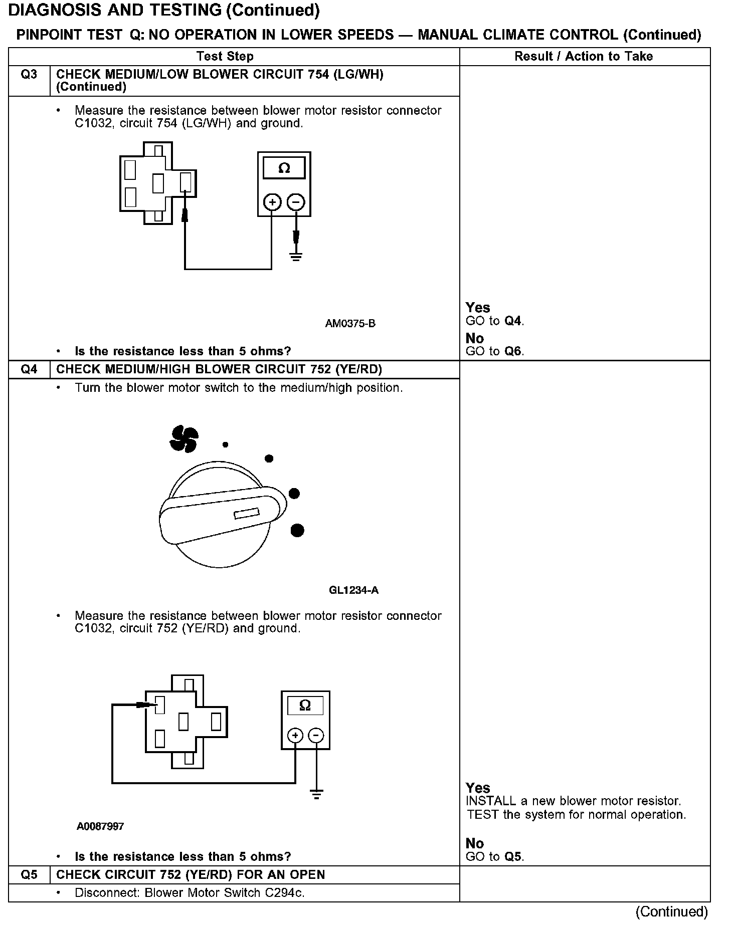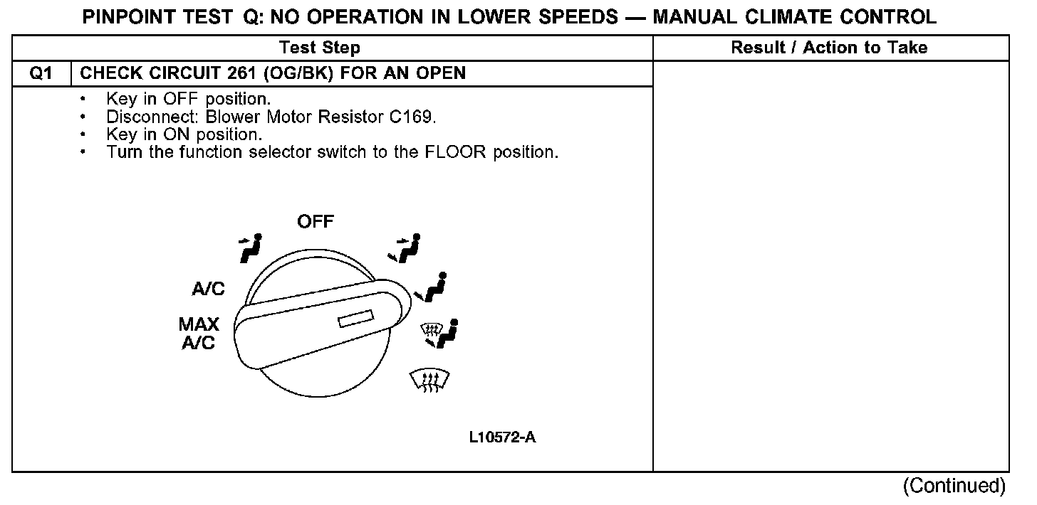 PINPOINT TEST Q: NO OPERATION IN LOWER SPEEDS - MANUAL CLIMATE CONTROL