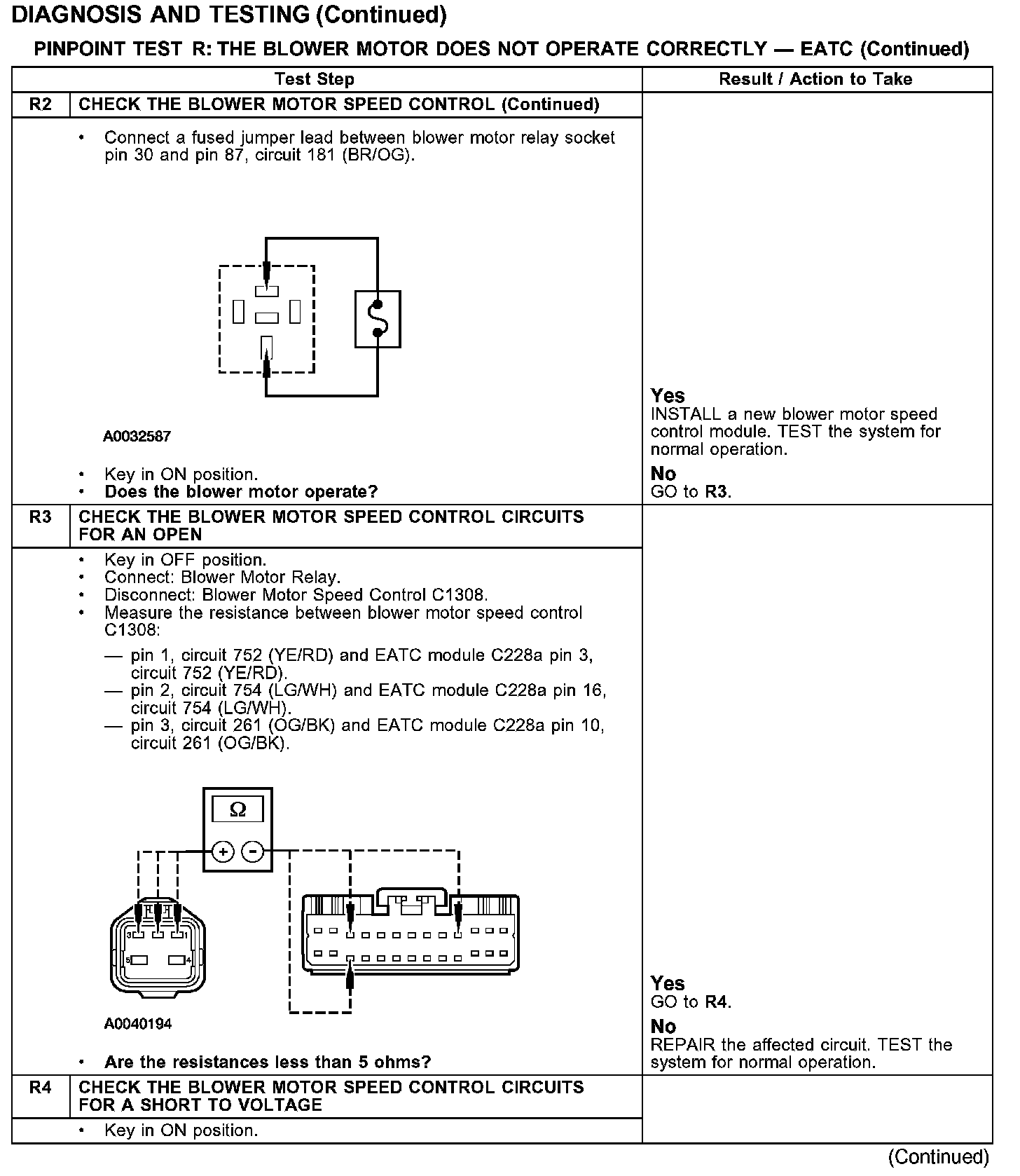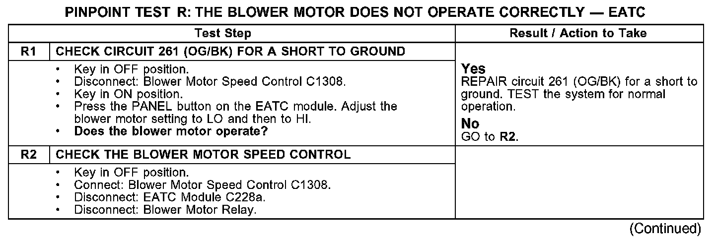 PINPOINT TEST R: THE BLOWER MOTOR DOES NOT OPERATE CORRECTLY - EATC