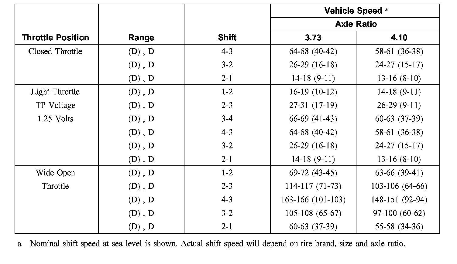 Shift Speed - Approximate Km/h (MPH) (F-250, F-350, Excursion with 5.4L)