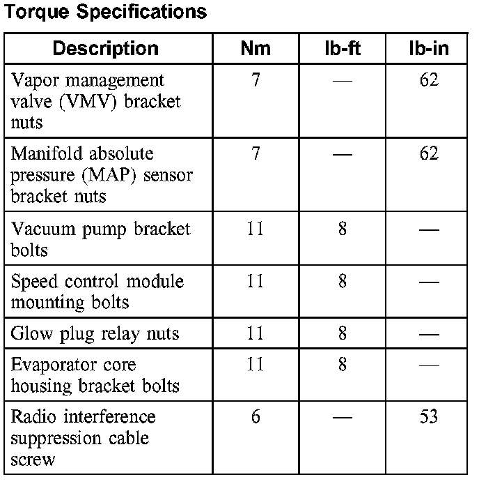 Torque Specifications:
