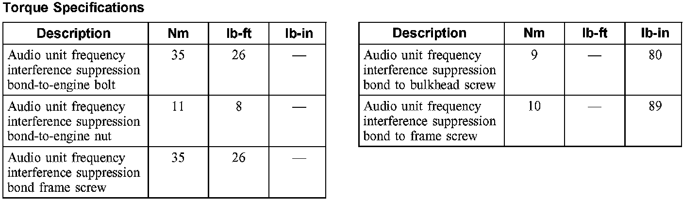 Torque Specifications: