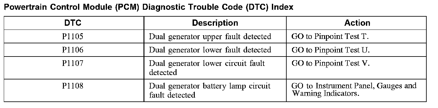 Powertrain Control Module Diagnostic Trouble Code Index