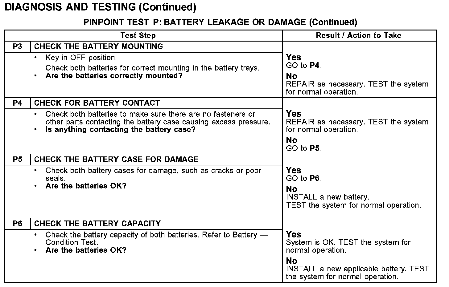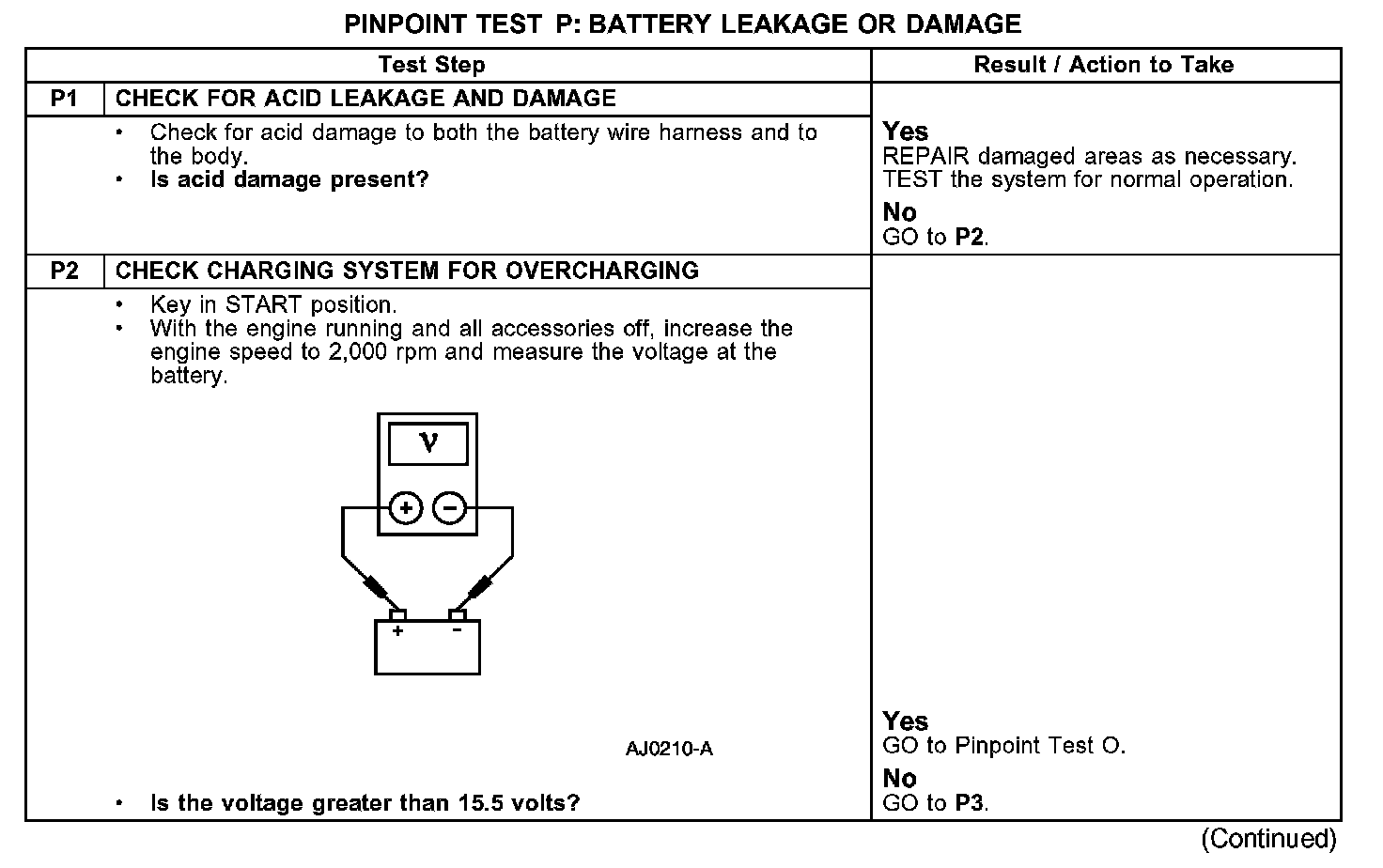 PINPOINT TEST P: BATTERY LEAKAGE OR DAMAGE